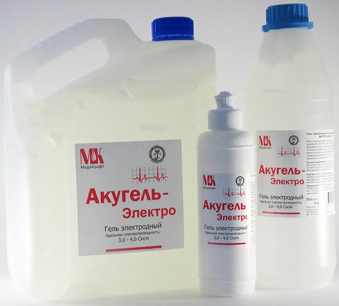 Современный электродный гель для ЭКГ, ЭЭГ, РЭГ, ЭМГ, электромиостимуляции, дефибриляции, различных процедур аппаратной косметологии.
