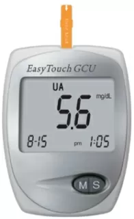 - Анализатор биохимический EasyTouch GCU - это прибор для самостоятельного определения уровня глюкозы, холестерина и мочевой кислоты. Мочевую кислоту в крови особенно важно контролировать при подагре, гиперурикемии, болезни суставов, артрите, отложении солей.