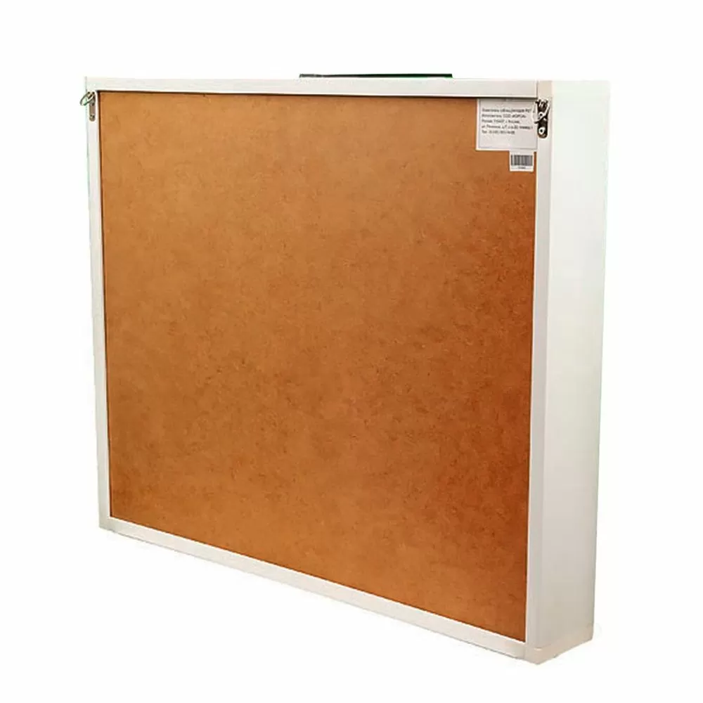 На задней стенке есть петли, чтобы его можно было повесить на стену.