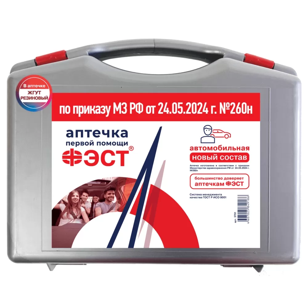 Аптечка изготовлена в соответствии с приказом Министерства здравоохранения Российской Федерации от 24.05.2024 г. №260н.