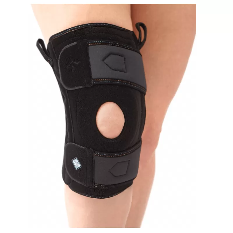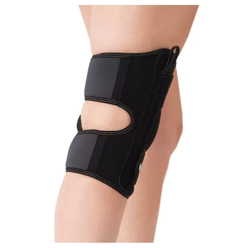 - надежно поддерживает коленную чашечку при помощи пателлярного кольца, а массажные ребра на нем улучшают местное кровообращение, что ускоряет процесс восстановления.