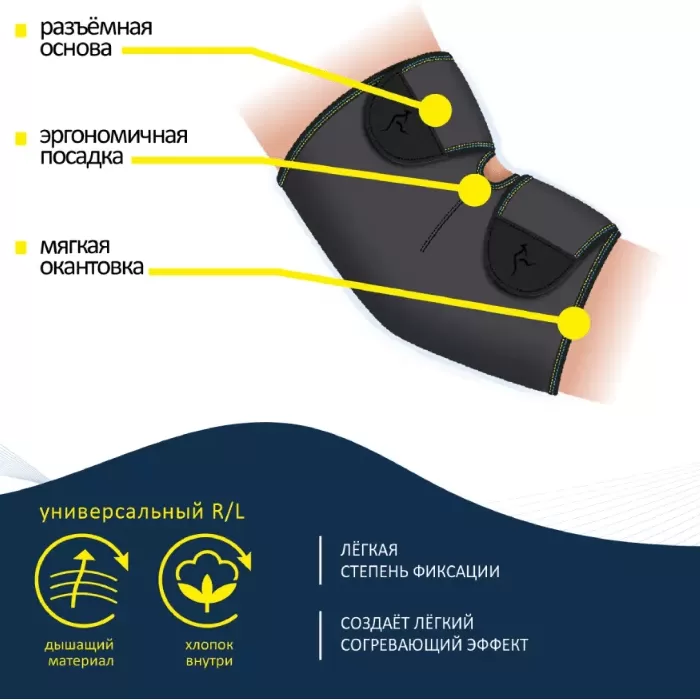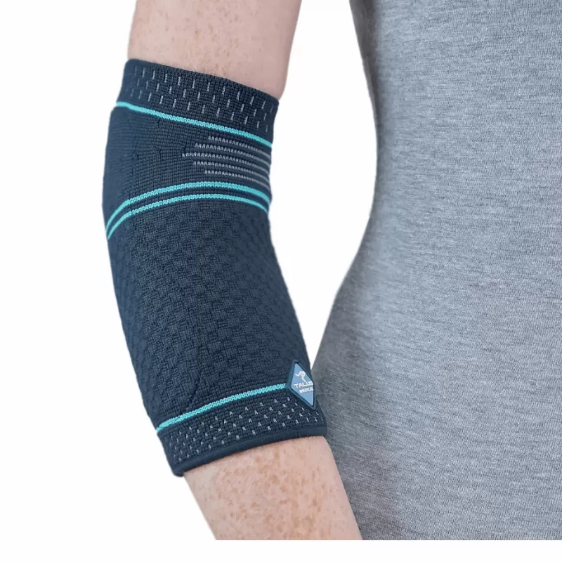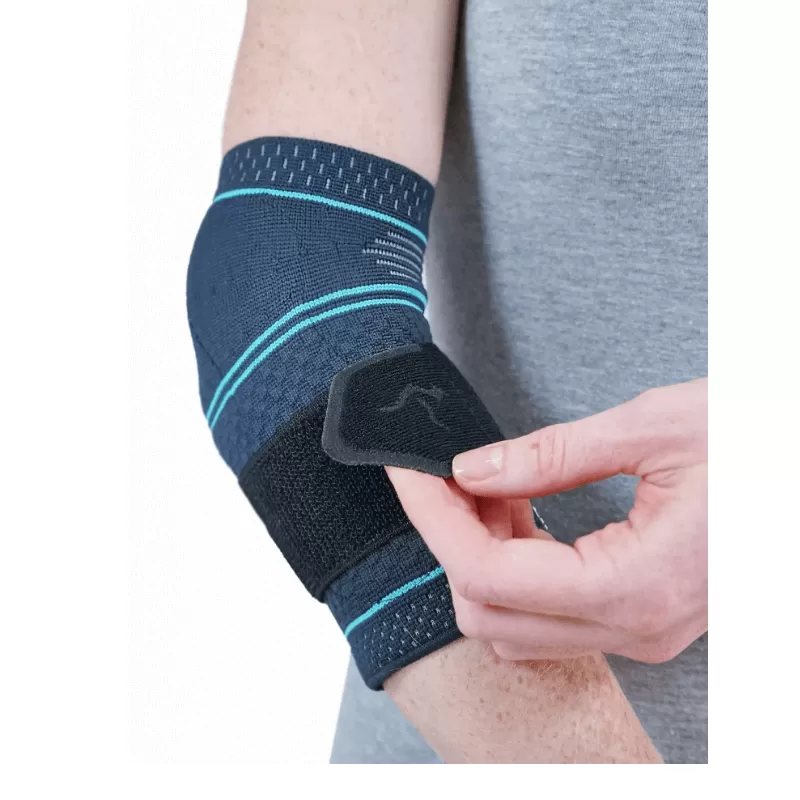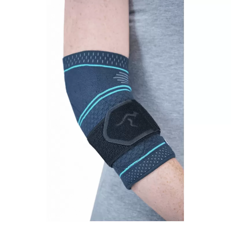 - Плосковязанный бандаж на локтевой сустав анатомической формы с мягко-упругими вставками, разреженной вязкой в области сгиба и фиксирующим ремнем, создает необходимую для снятия боли и отёка компрессию, микромассажный эффект, восстанавливает проприоцепцию, ускоряет процесс восстановления при заболеваниях и травмах локтевого сустава, в т.ч. в поздний период реабилитации.