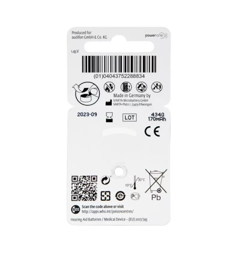 - Элементы питания Audifon производятся в Германии на заводе VARTA. Данные батарейки имеют меньший катод и обеспечивают более длительное и стабильное напряжение, чем обычные алкалиновые батарейки.
