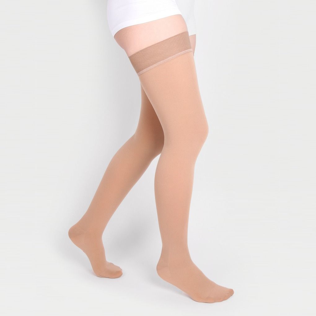 - резинка на силиконовой основе, в том числе на широкое бедро, мягко фиксирует чулок , не нарушая кровотока