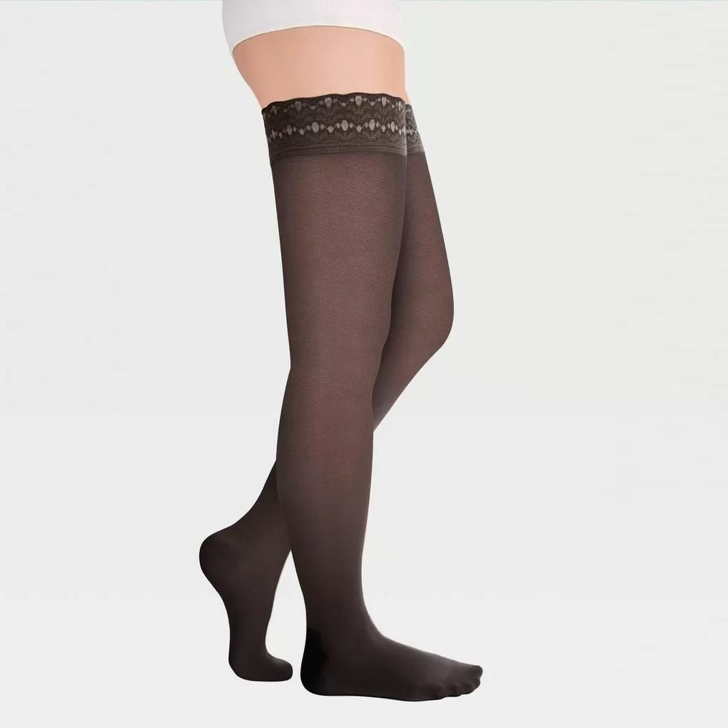 - резинка на силиконовой основе, в том числе на широкое бедро, мягко фиксирует чулок , не нарушая кровотока
