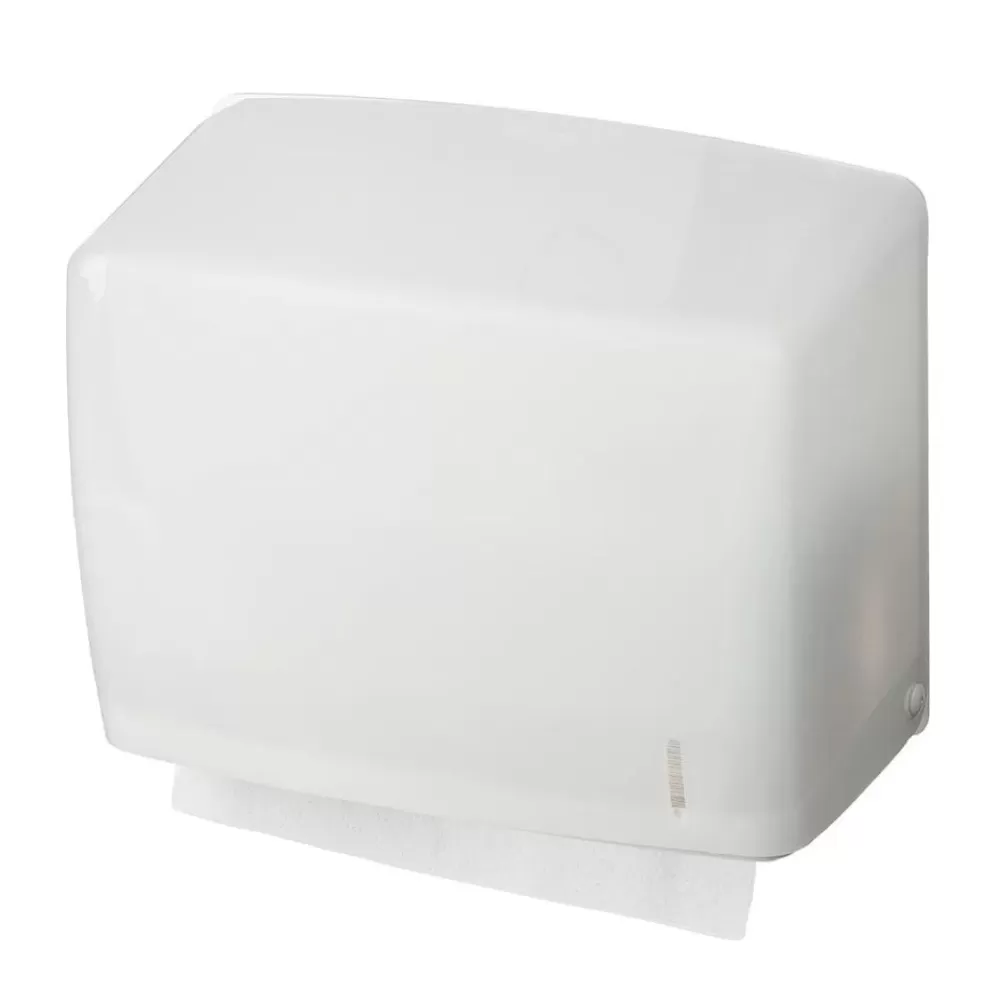 Диспенсер для полотенец имеет эргономичную форму и компактные размеры, отвечает всем требованиям гигиены.