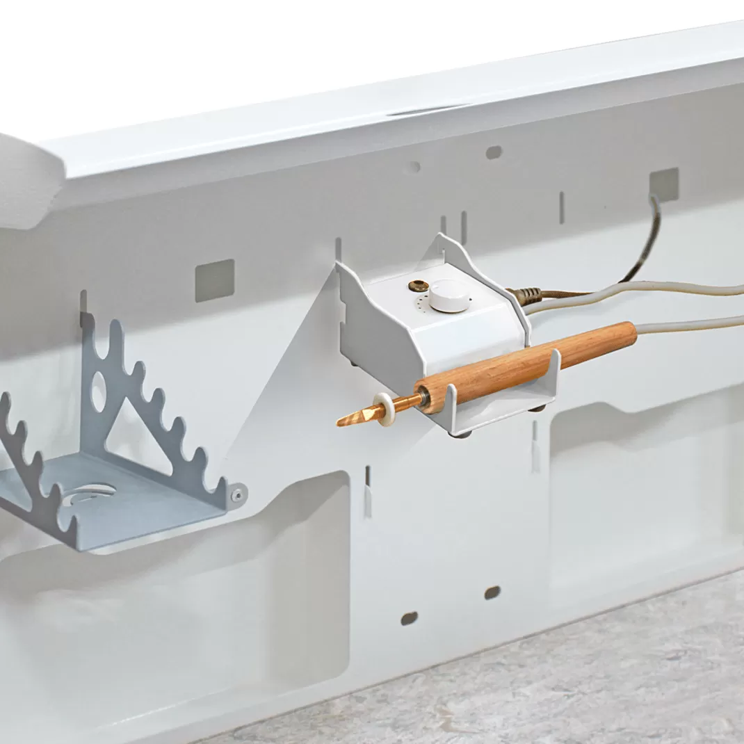 - блок управления навешивается в посадочные гнезда (шаг 60 мм: столы МАСТЕР, панели БРИДЖ, САЙД) - экономия полезной площади в рабочей зоне;