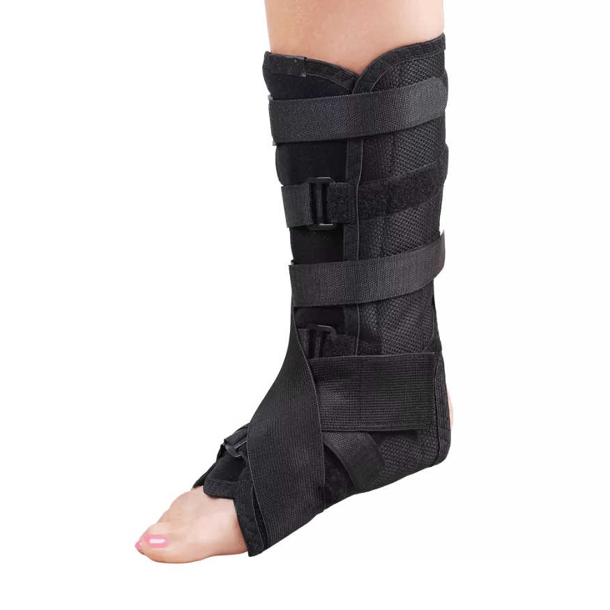 - Имеет 2 съемных пластиковых ребра жесткости для фиксации ступни и 2 анатомические съемные пластиковые пластины, фиксирующие лодыжку по вертикали