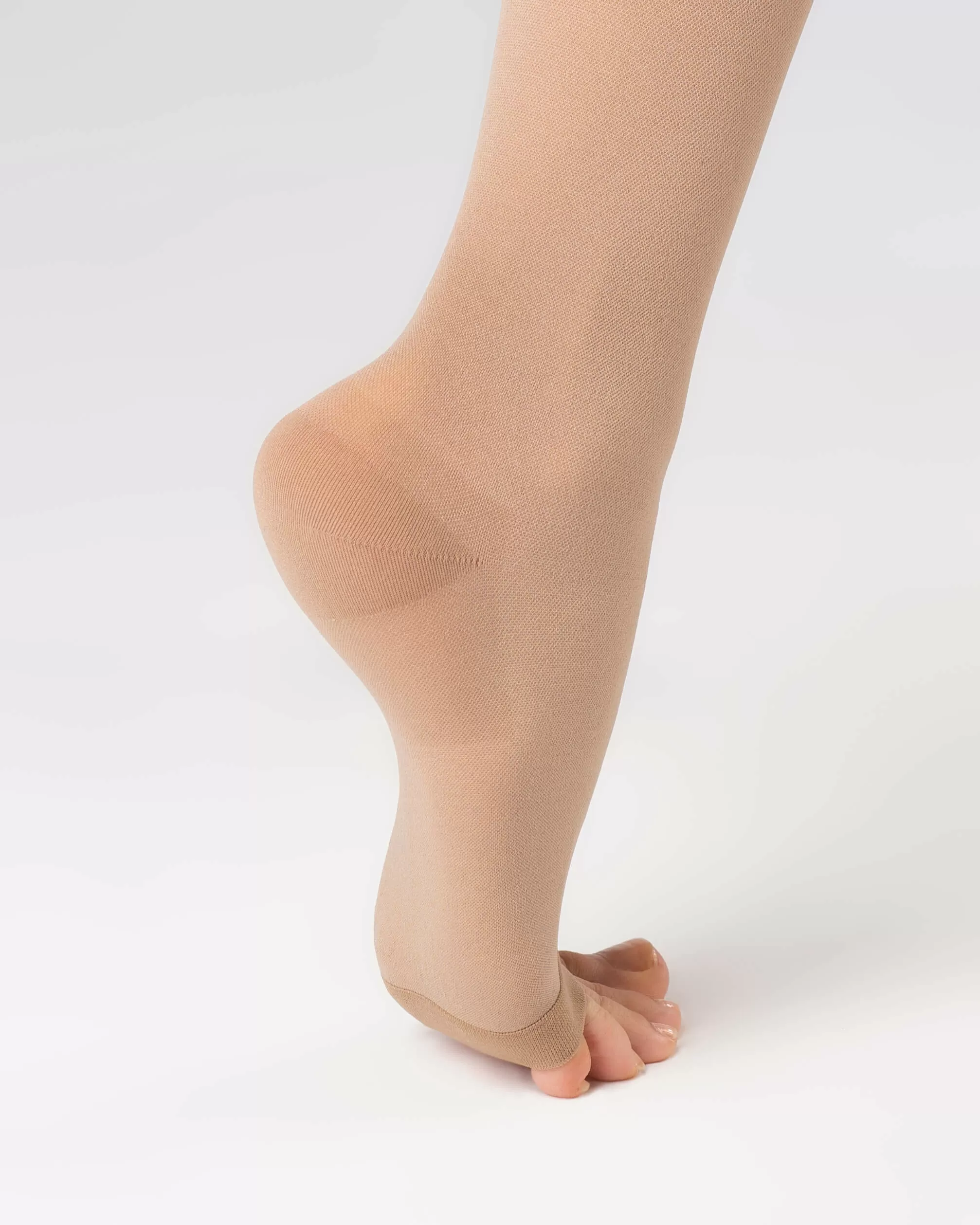 - В комплекте к трикотажу с открытым мысом идет шелковистый носочек для облегчения надевания.