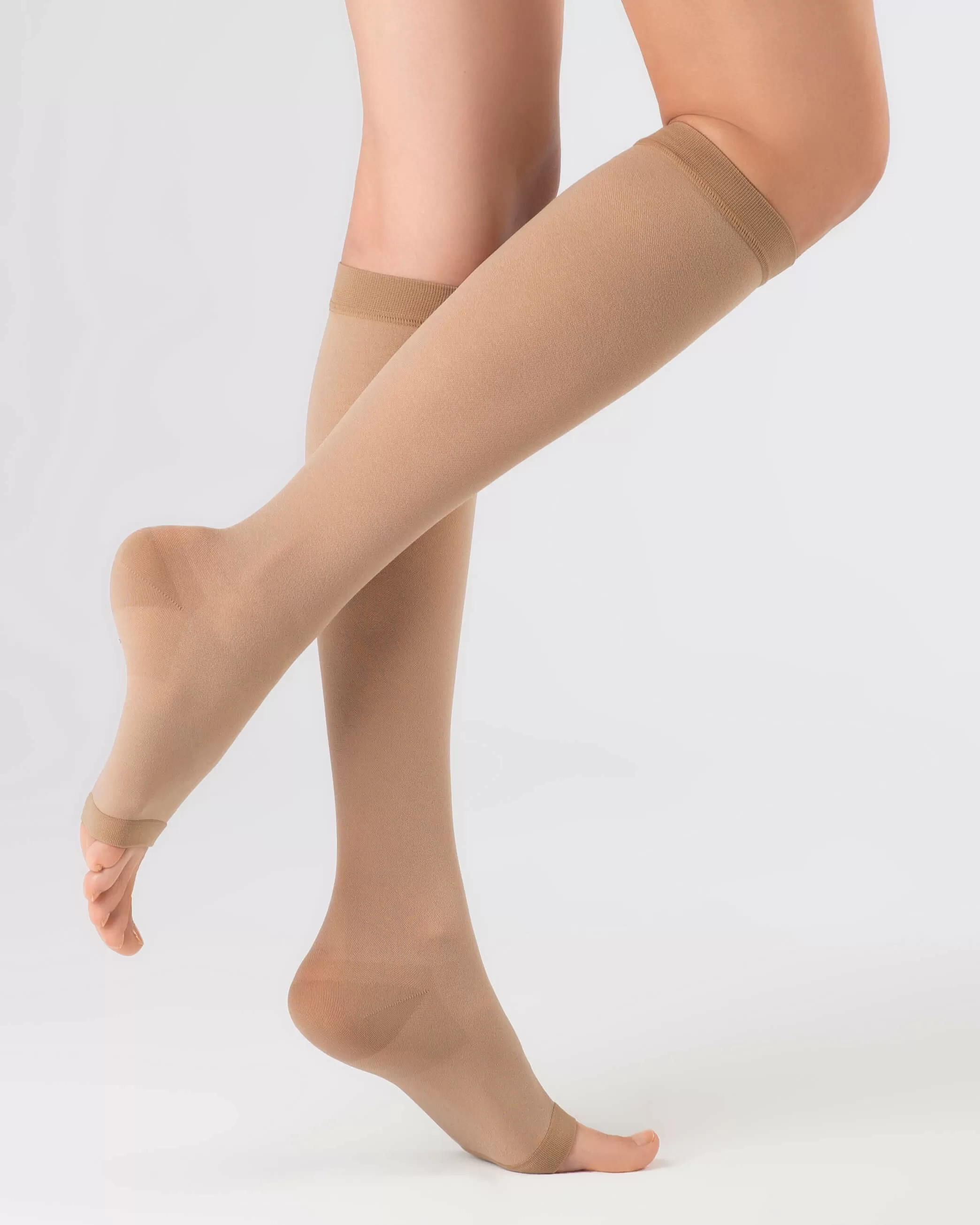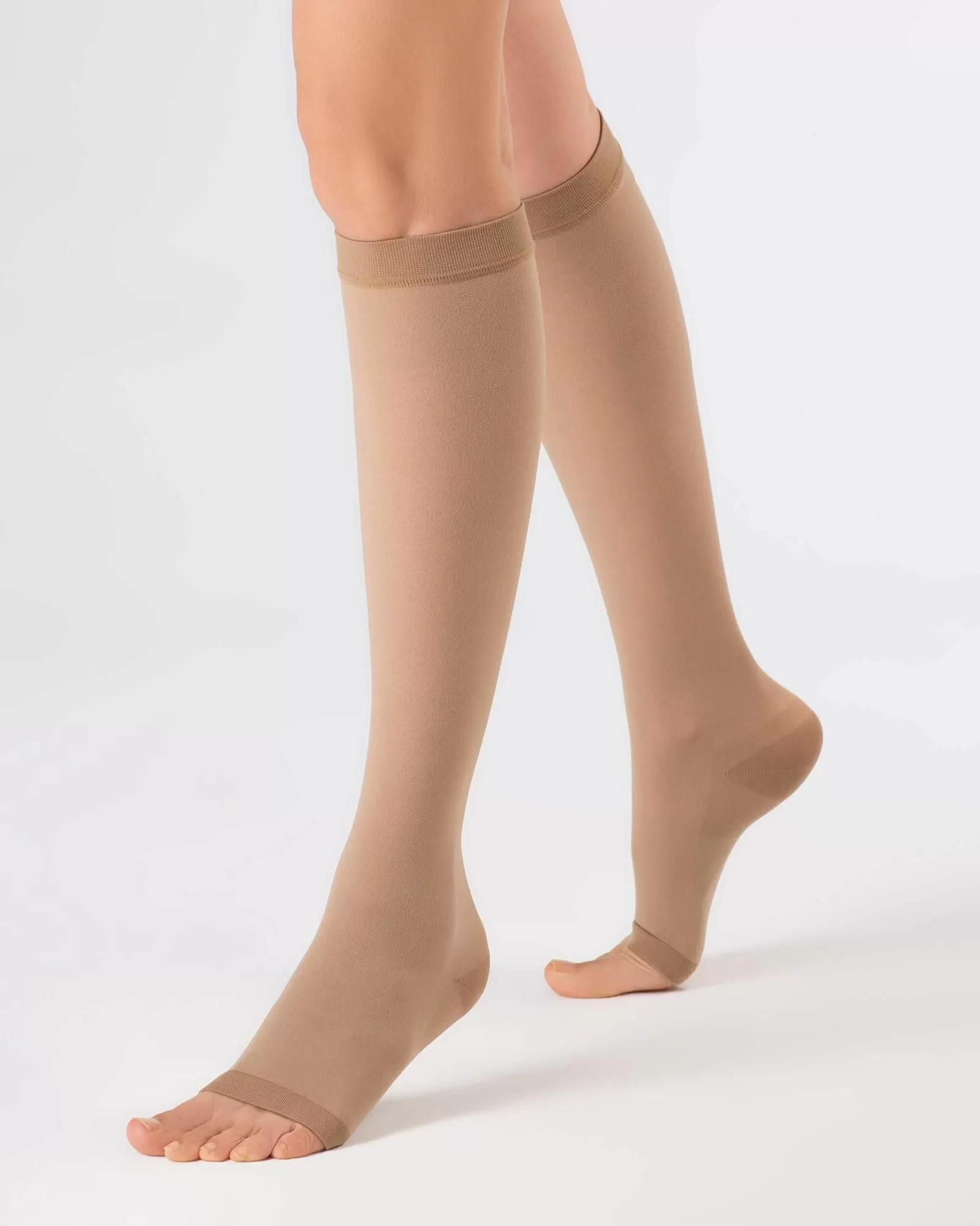 - В комплекте к трикотажу с открытым мысом идет шелковистый носочек для облегчения надевания.