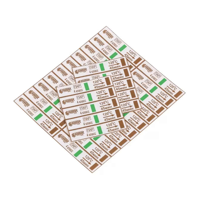 - липкий слой на обратной стороне индикатора облегчает его закрепление на стерилизуемых упаковках и вклеивание в документы архива;