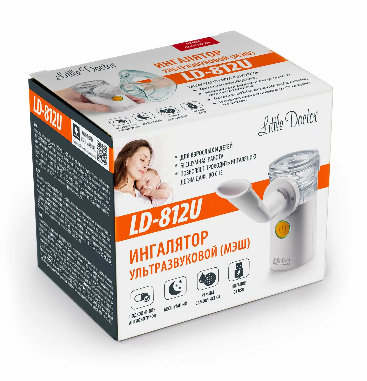 • Бесшумная работа и особенности конструкции Мэш-технологии позволяют проводить ингаляцию детям даже во сне.
