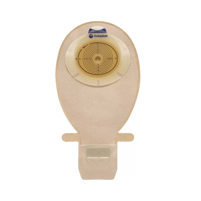 Однокомпонентный дренируемый калоприемник SenSura® со встроенной двухслойной плоской пластиной.