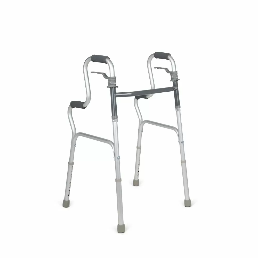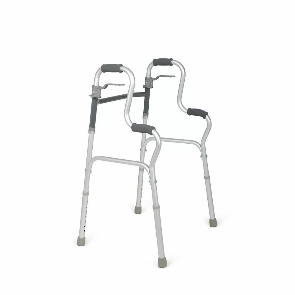 - Высота ходунков регулируется за счет телескопического механизма с кнопочным фиксатором, что позволяет использование ходунков пользователями разного роста.