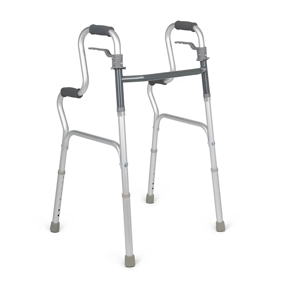 - Ходунки имеют двухуровневую конструкцию. Верхний уровень служит опорой при передвижении, а нижний помогает встать.