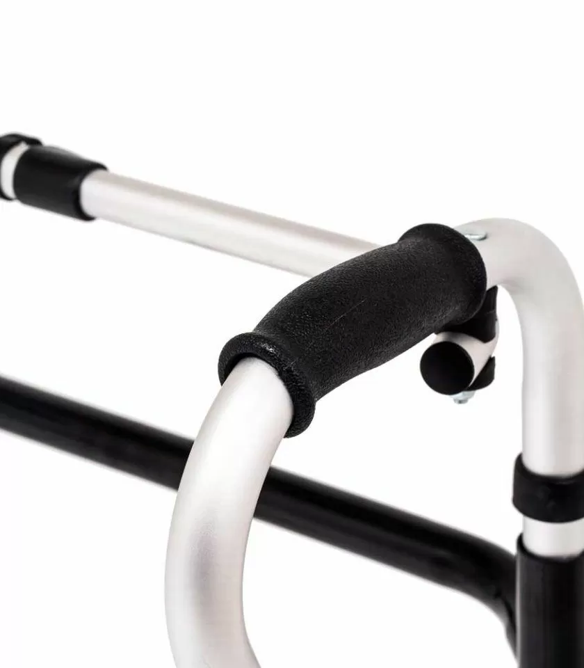 Складные алюминиевые опоры-ходунки W HR с регулировкой по высоте в диапазоне 78-96 см подойдут людям с ростом от 160 до 180 см. Модель оснащена ручками на двух уровнях: ручки на нижнем уровне помогут пользователю подняться из положения «сидя», а на верхнем – для передвижения. Опоры-ходунки могут использоваться в двух режимах: «с шагом» и «без шага». В сложенном виде ходунки W HR занимаются мало места, их легко транспортировать и хранить дома.