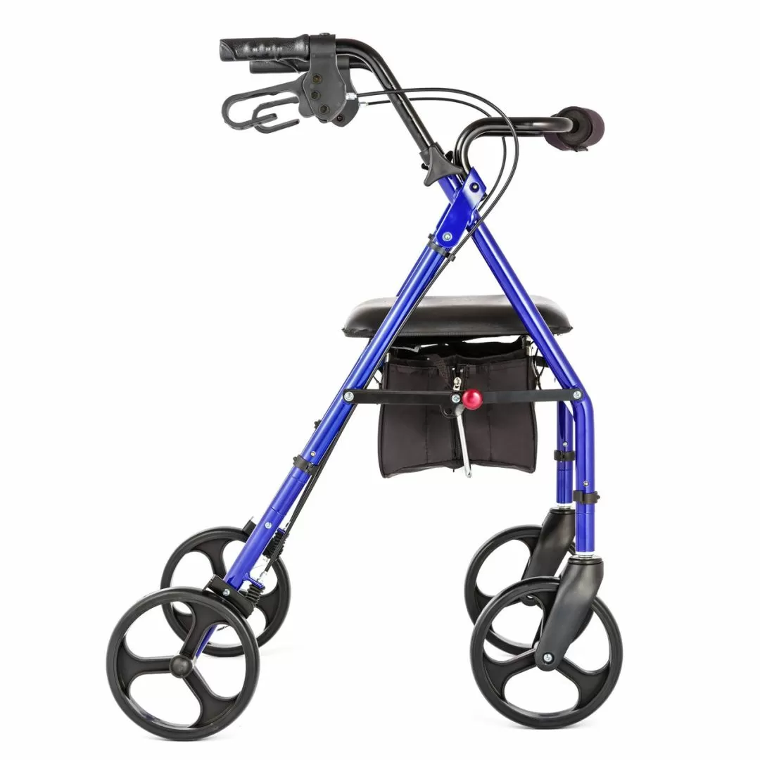 - Ходунки-ролляторы оснащены мягким сиденьем из искусственной кожи, полукруглым мягким упором для спины и корзиной для личных вещей.