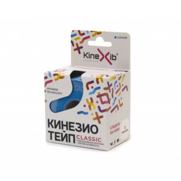- Кинезио-тейп «Кинексиб» — лента из хлопка, эластичность которой схожа с эластичностью кожи.