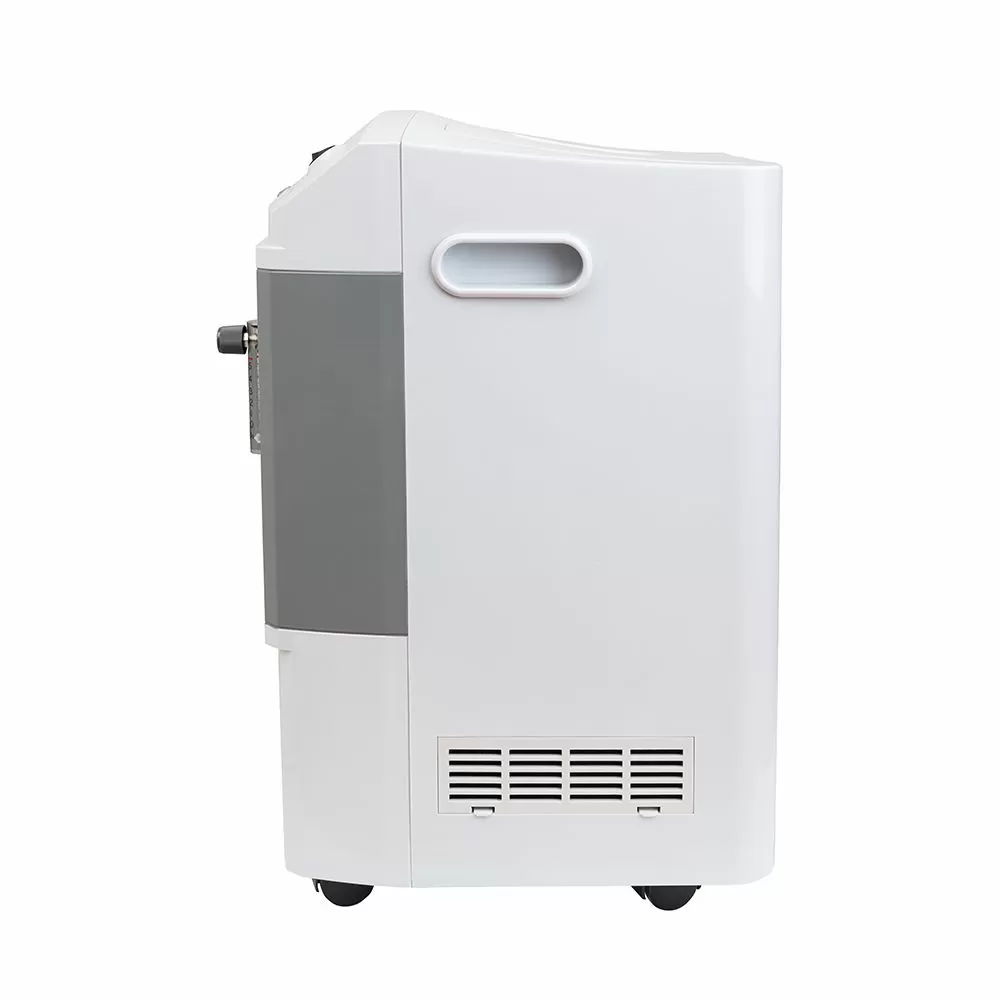 Работает оборудование от сети. Концентратор оснащен таймером, специальным отсеком для хранения комплектующих и аварийной сигнализацией, которая срабатывает при падении концентрации кислорода, при перегреве оборудования и перебое в питании. Оборудование оснащено колесами для удобного перемещения. Производительность концентратора составляет до 5 литров кислорода в минуту.