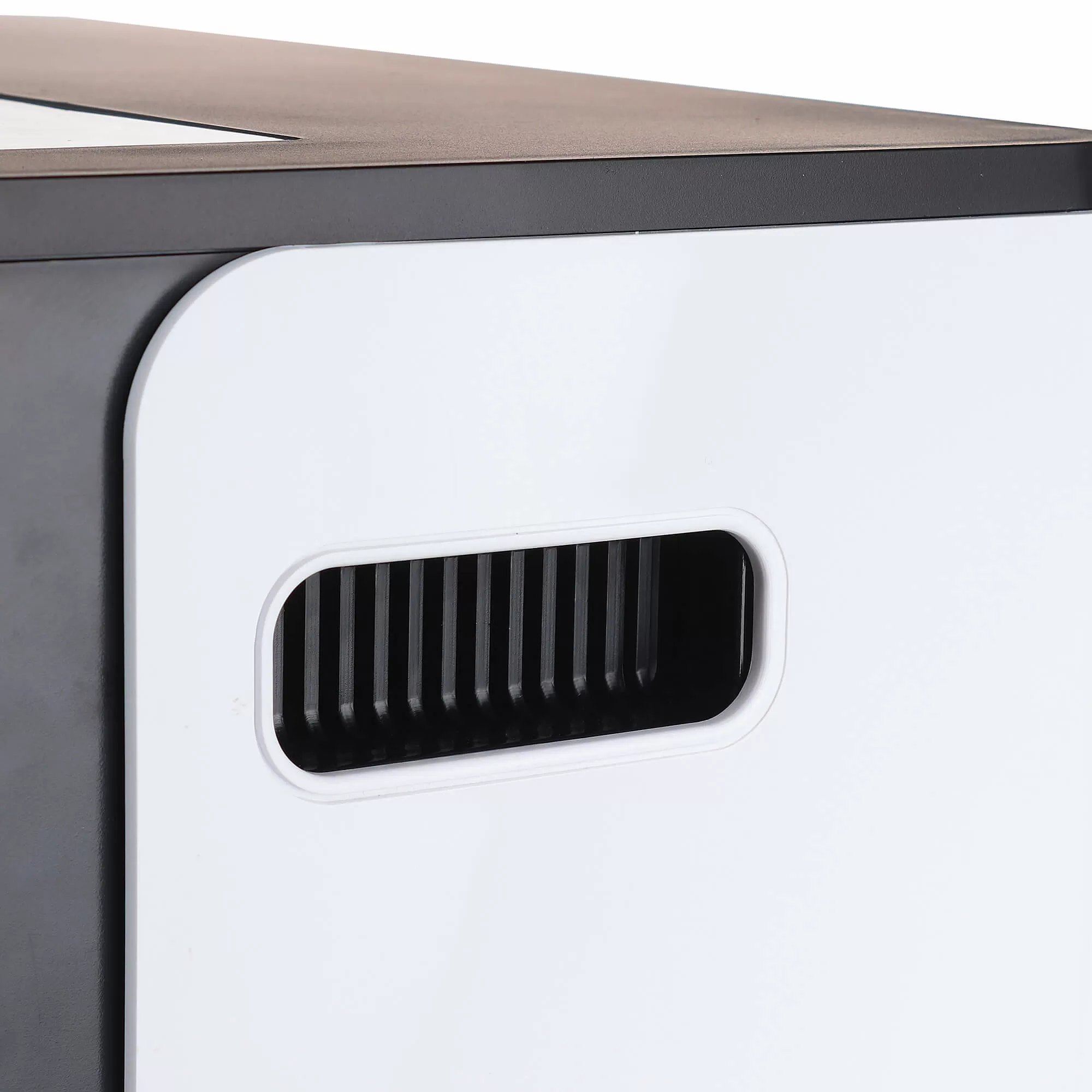 - Стильный и современный дизайн обеспечивается обтекаемостью корпуса и классическим сочетанием белого и черного в расцветке.