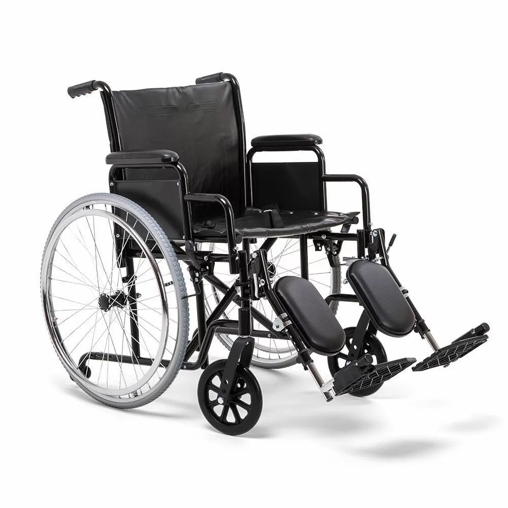 Кресло-коляска из искусственной кожи с усиленной рамой предназначено для людей с двигательными нарушениями. Помимо прочности, материал обшивки отличается удобством ухода и дезинфекции. Подножки оснащены мягкими опорами под голени: пользователю будет комфортно в течение всего дня. Рама коляски складная, что упрощает ее хранение и перевозку в автомобиле. Для безопасности на уклонах и дополнительного удобства передвижения имеются антиопрокидыватели с колесами.