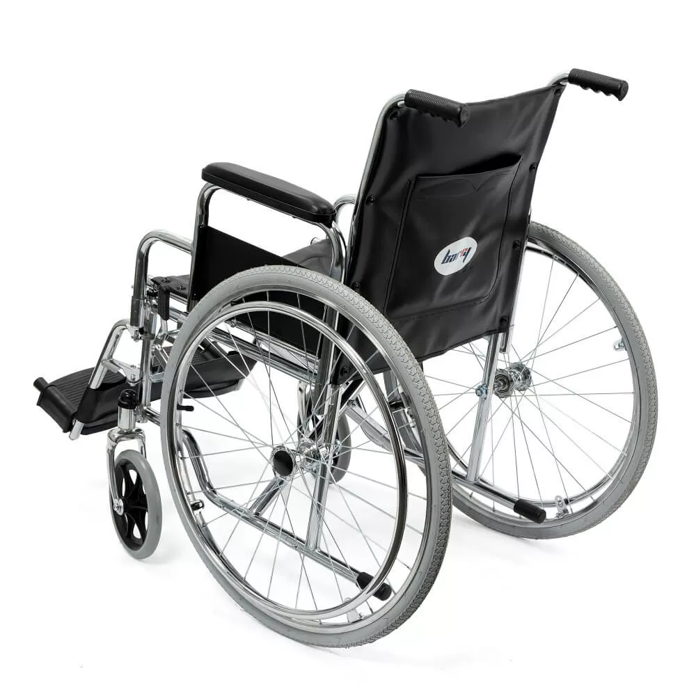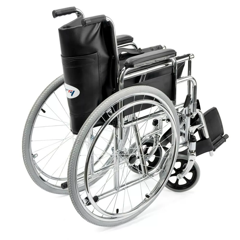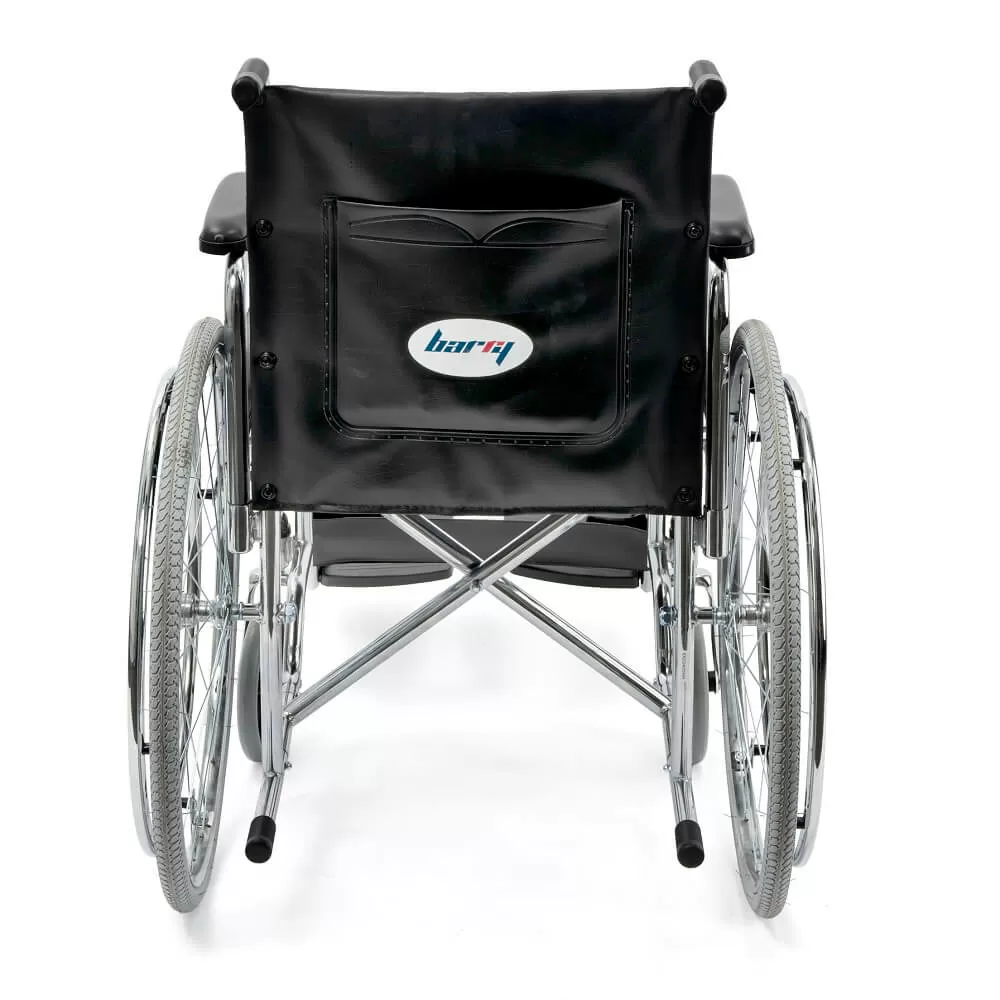 Коляска Barry B5 отлично подходит для улицы и дома: пневматические шины обеспечивают плавный ход при движении по неровной дороге, а компактные размеры помогают маневрировать в небольших помещениях. Кроме того съемные подлокотники и подножки упрощают пересаживание из коляски на кровать или стул.