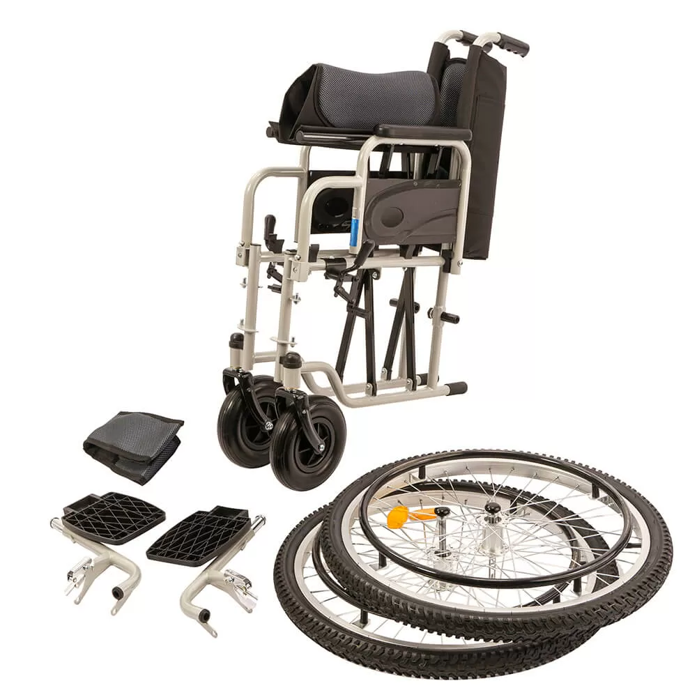 - Быстросъемные задние колеса позволяют за секунды снять колеса для компактного размещения в багажнике автомобиля или хранения в малогабаритном пространстве.