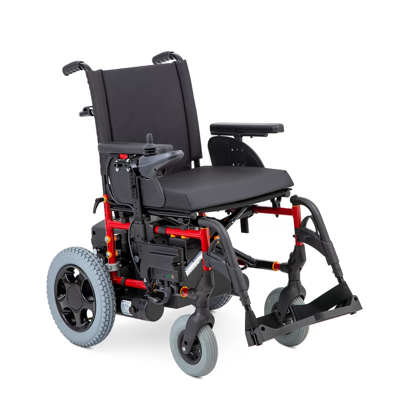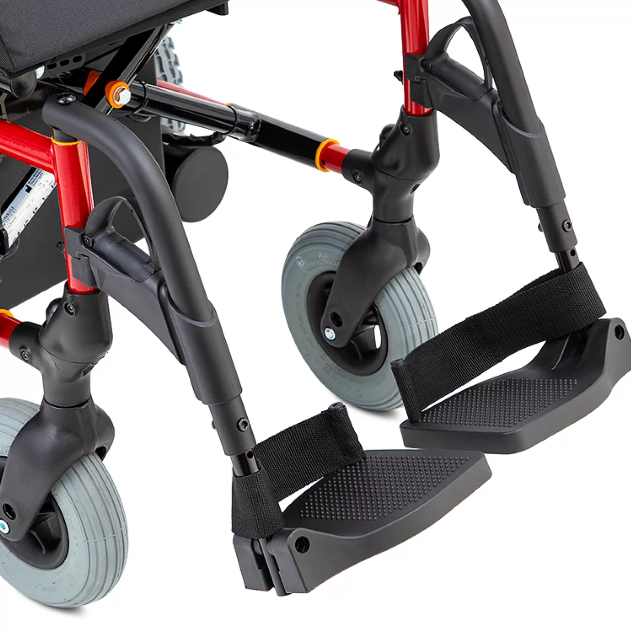 - Коляска оснащена удобным многопозиционным контроллером с чувствительным джойстиком, который обеспечивает плавное управление и маневренность. Джойстик может быть установлен как под левую, так и под правую руку и отводится в сторону для удобного подъезда к столу.
