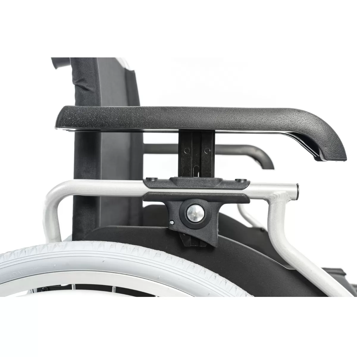 - Откидные подлокотники, регулируемые по высоте, с поручнями из цельных кусков пенополиуретана, оборудованы матовыми боковыми стенками.