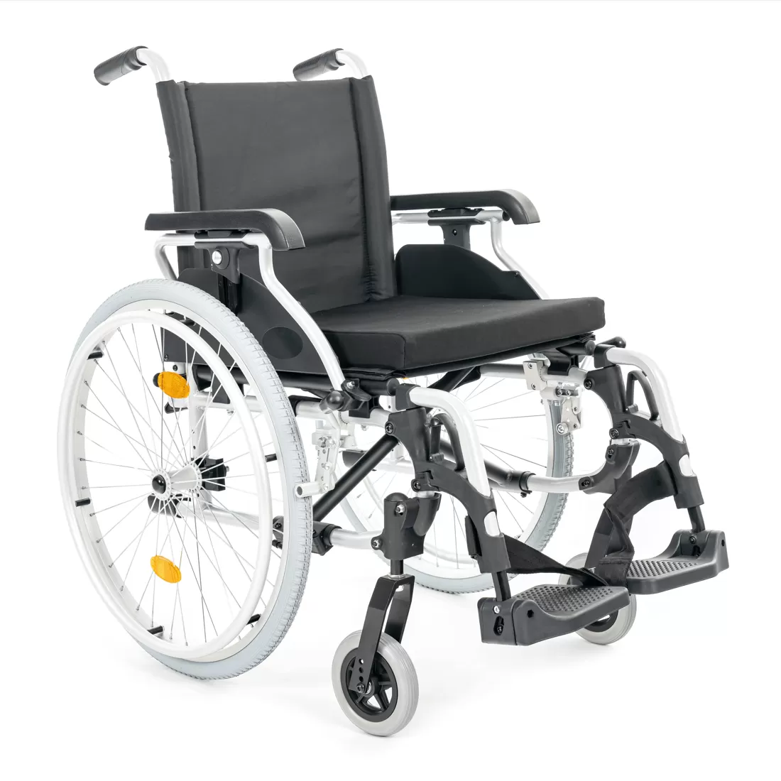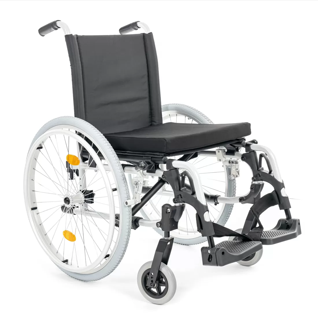 - Сиденье шириной 43 см изготовленo из нейлона, обладающего водоотталкивающими свойствами и снащено дополнительной противопролежневой подушкой со съёмным чехлом на молнии.