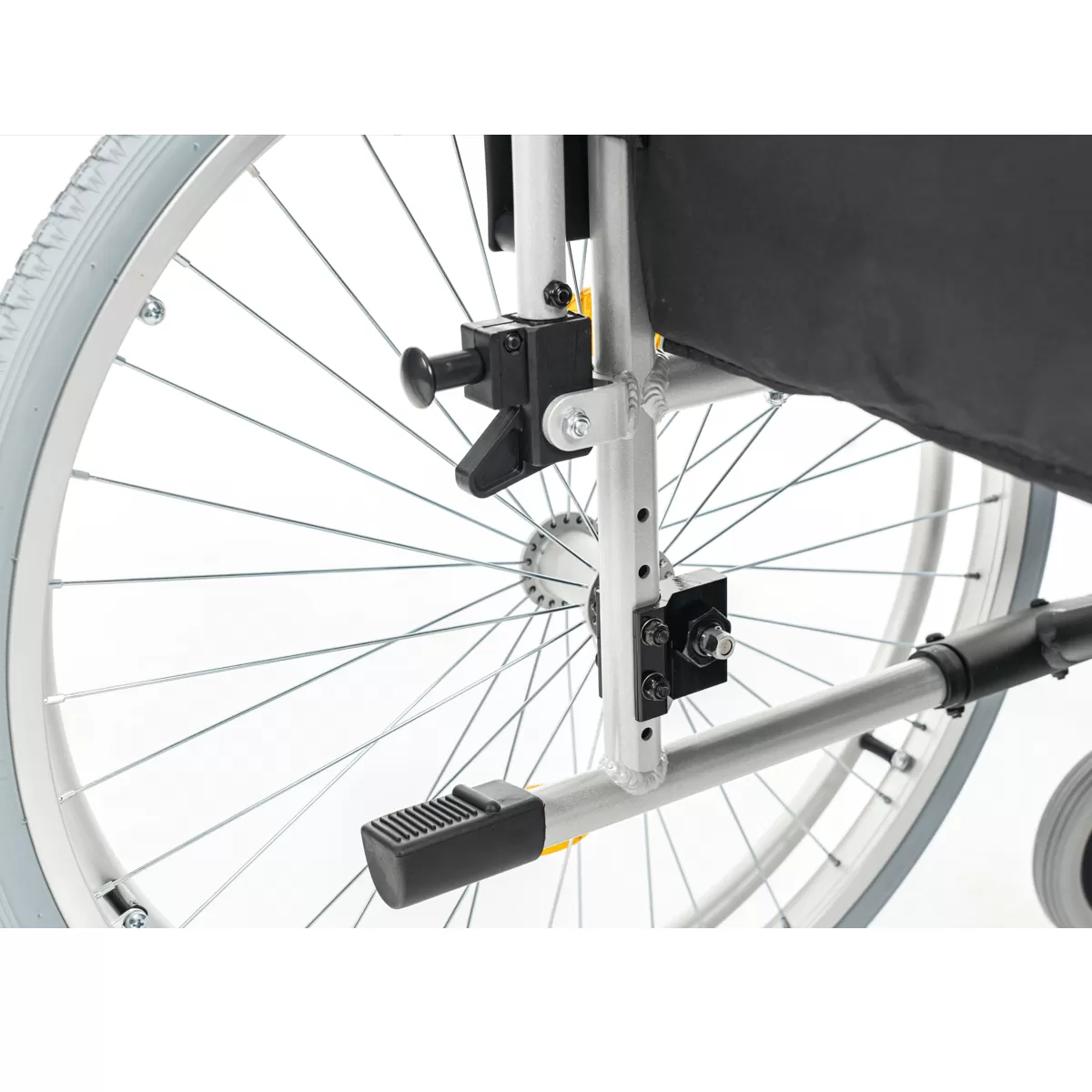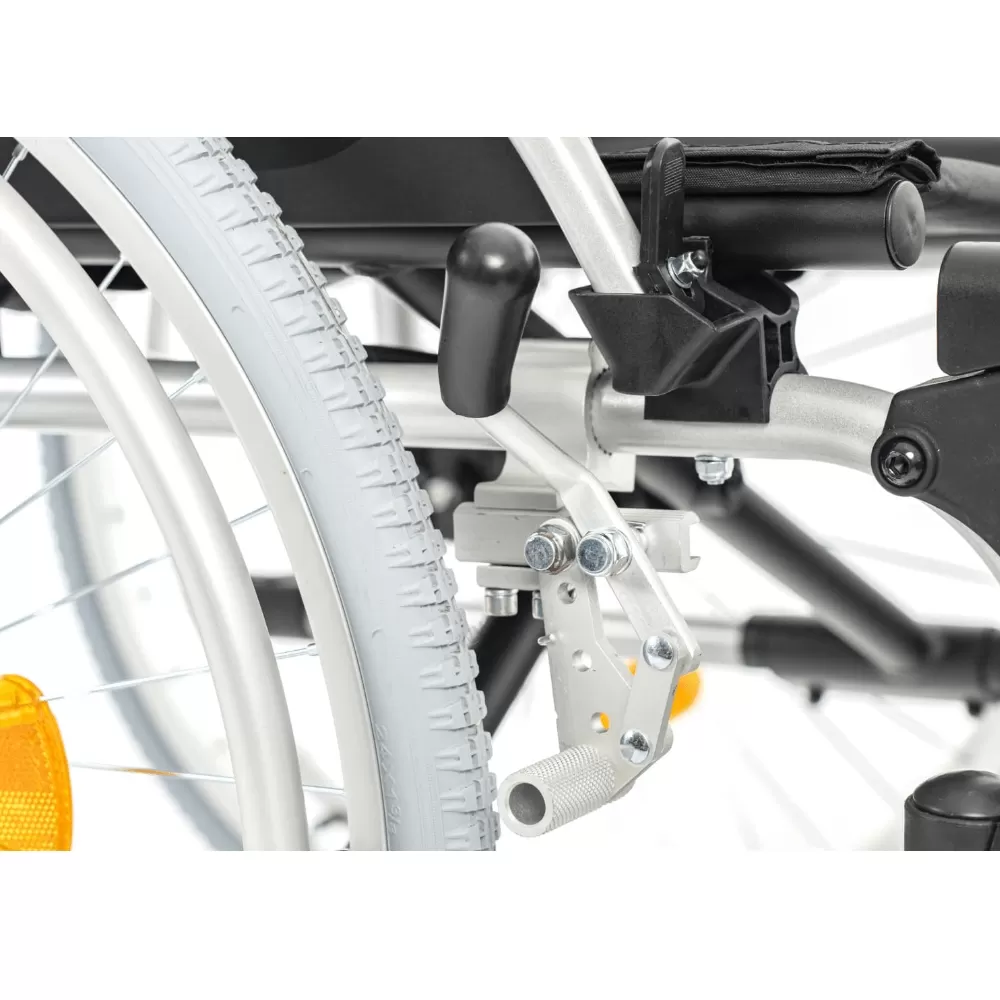- Стояночные тормоза-фиксаторы находятся в удобной доступности от рук пользователя слева и справа. Оснащены сдвижным креплением для точной настройки.