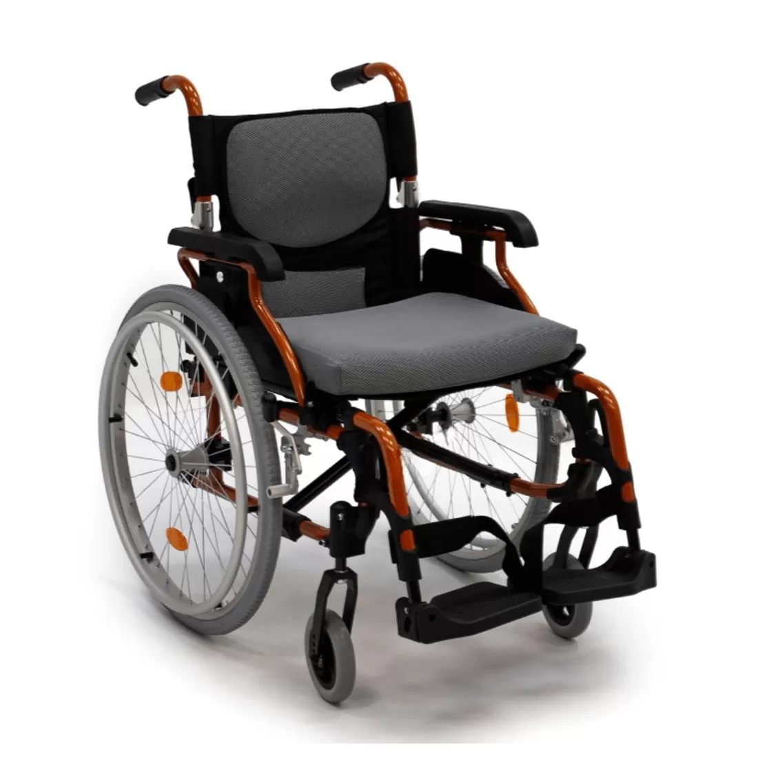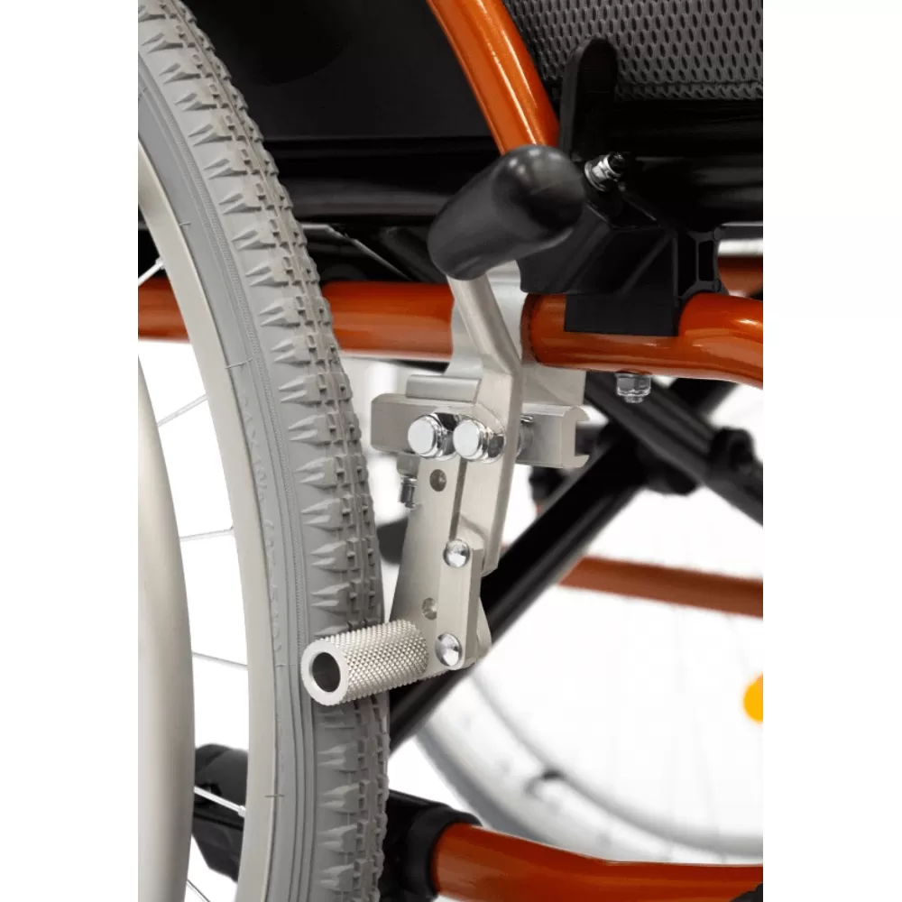 - Стояночные тормоза-фиксаторы находятся в удобной доступности от рук пользователя слева и справа. Оснащены сдвижным креплением для точной настройки.