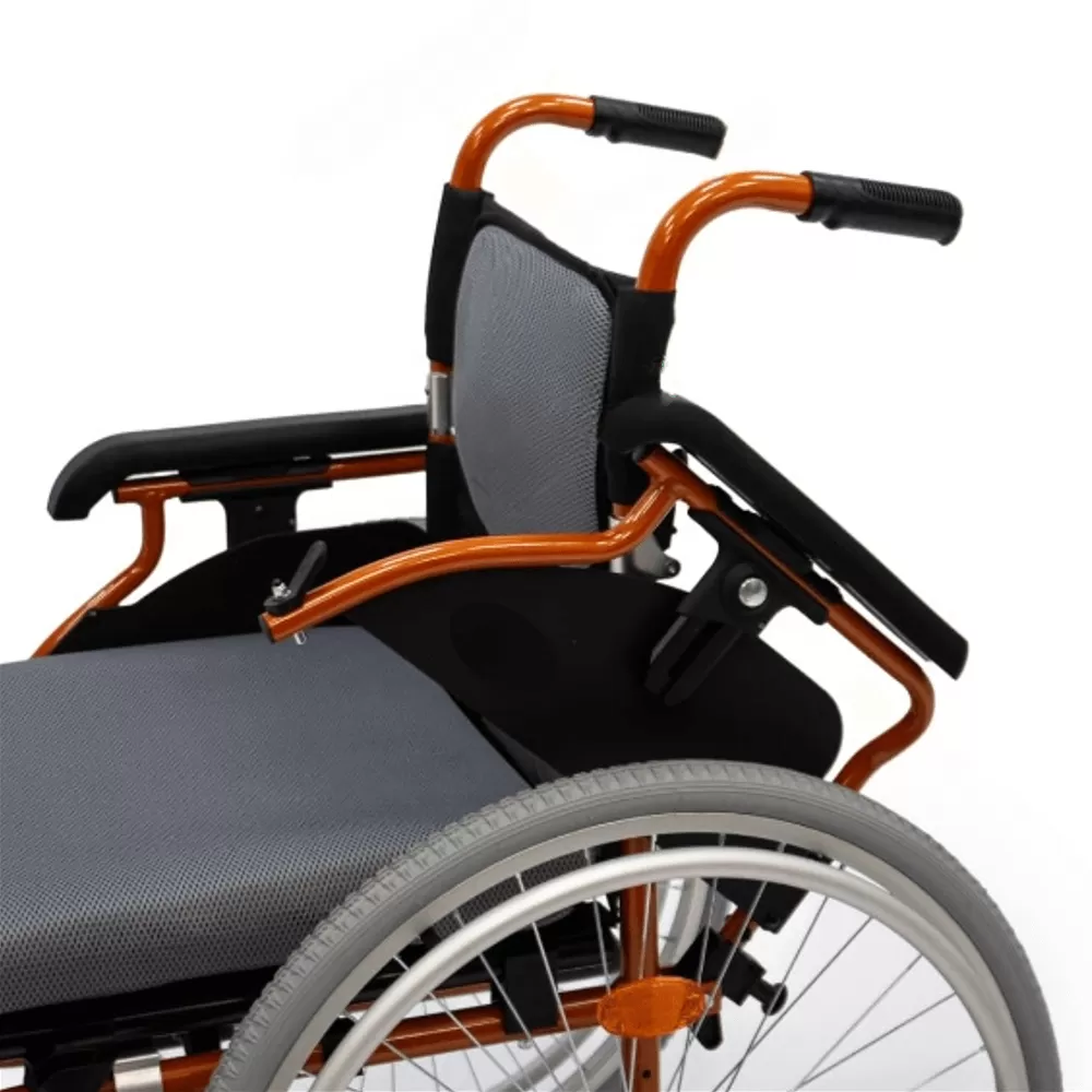 - Алюминиевая рама складывающаяся "сторона к стороне" посредством складного х-образного механизма, обладает минимальным для повседневного кресла-коляски весом