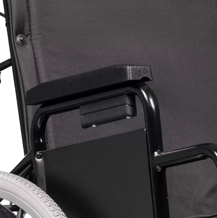- Спинка, регулируемая по углу наклона с помощью рычагов на ручках для сопровождающего лица