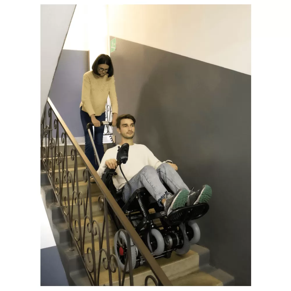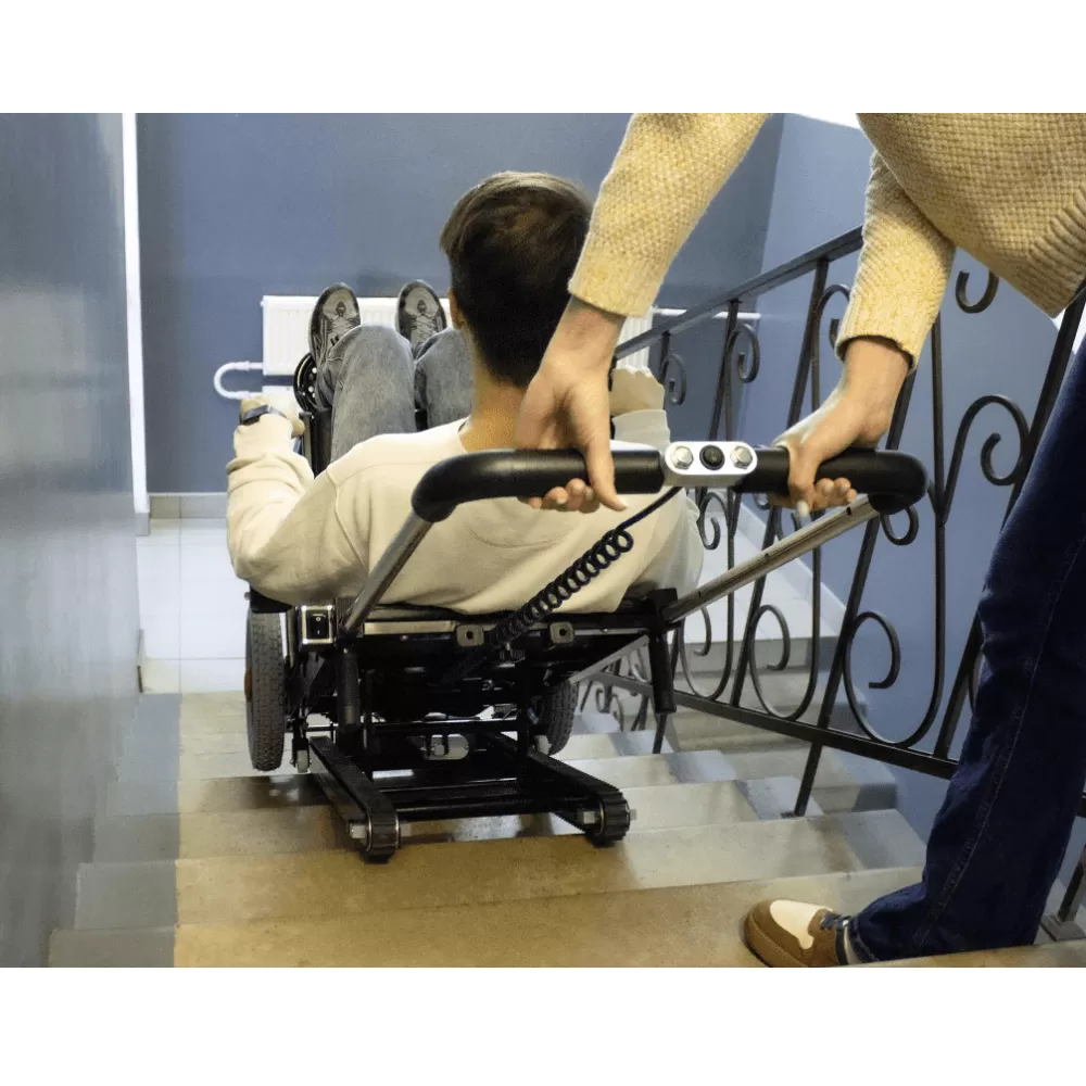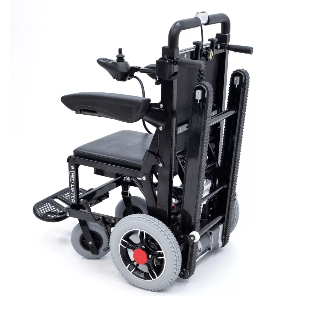 Электрическая кресло-коляска с интегрированным лестничным гусеничным подъемником MET Lifter 2 предназначена для комфортного и безопасного перемещения как по лестничным пролетам, так и по улице при помощи сопровождающего.В России средняя высота ступеньки составляет 14-15 см, MET LIFTER с легкостью преодолевает ступеньки высотой до 21 см.