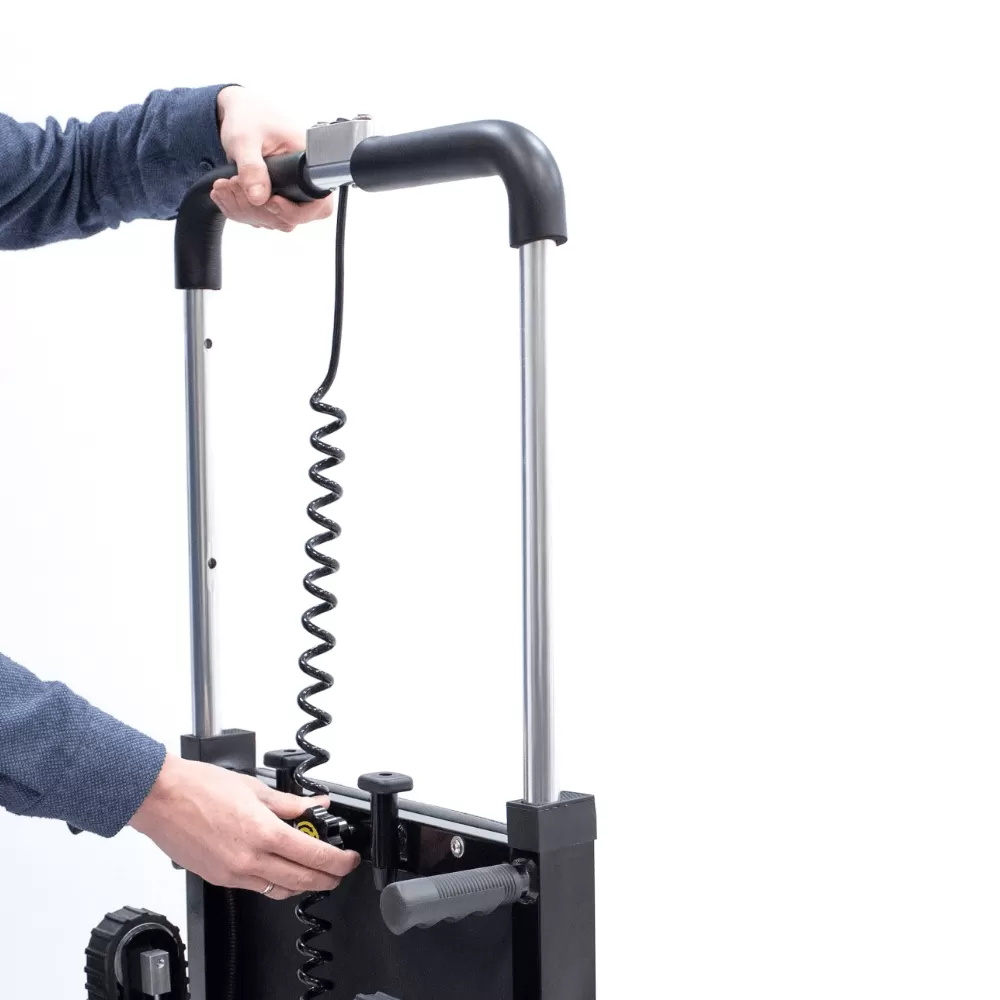 - Резиновая гусеница обеспечивает надежное крепление на лестнице и защиту от скольжения;