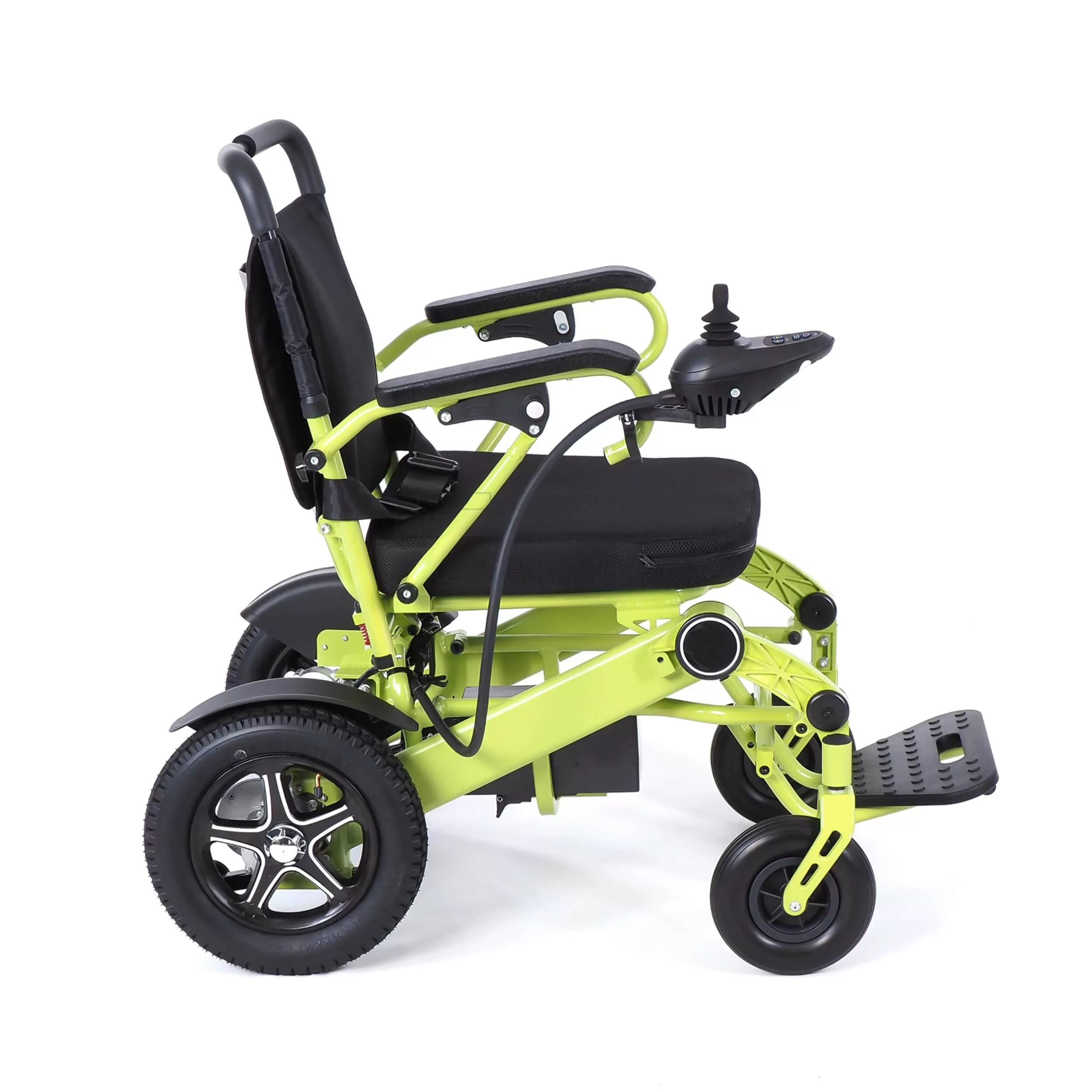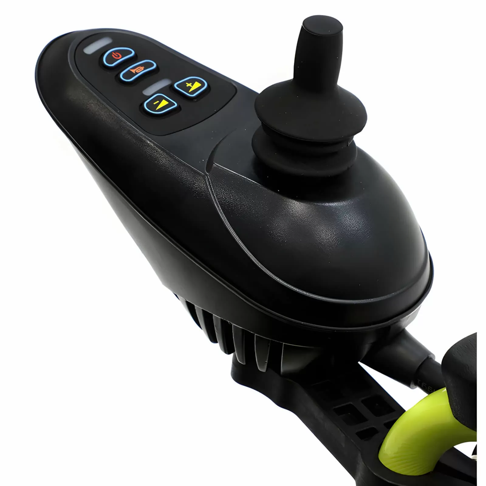 Модель оснащена антиопрокидывателями, которые обеспечивают дополнительную устойчивость коляски. Контроллер находится рядом с подлокотниками, и его можно установить, при необходимости, с любой удобной для пользователя стороны. На нем размещены джойстик, кнопка звукового сигнала, кнопка включения/выключения, кнопки регулировки скорости.Проходимость и ходовые качества