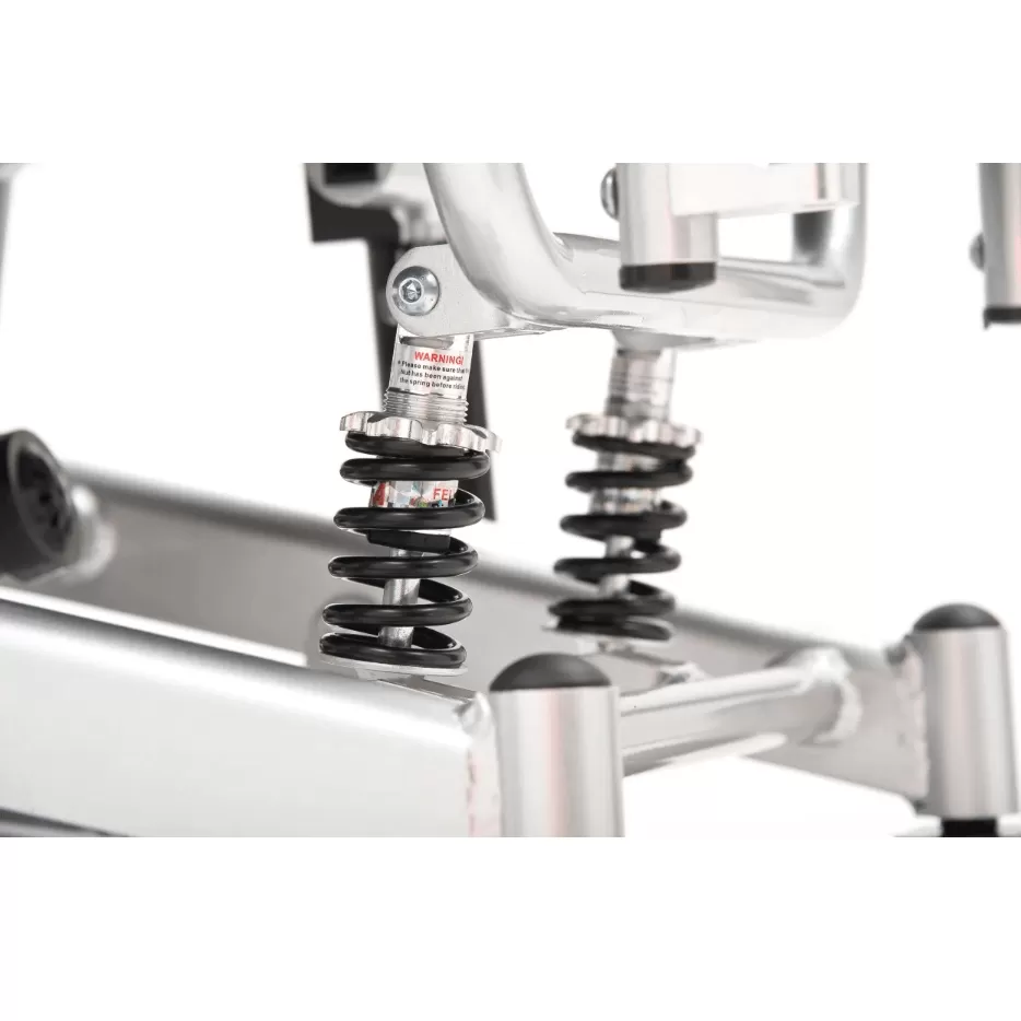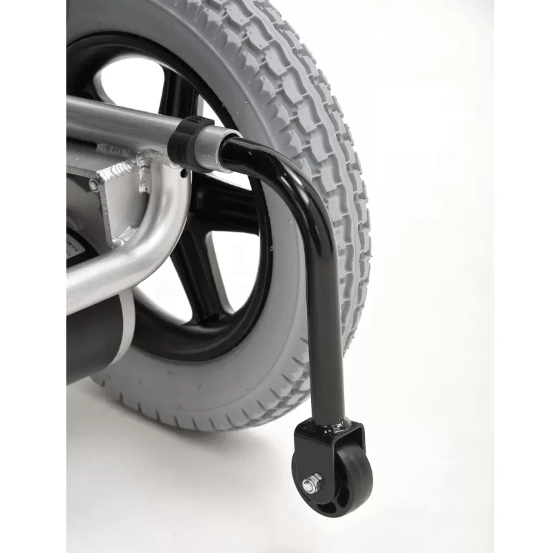 - Передние литые колеса MET ROUTE 14 не боятся проколов. Задние колеса – накачиваются для мягкости хода. Сочетание колес с подвеской обеспечивает маневренность и высокую проходимость. Конструктив электроколяски дает возможность въезда на поверхность с углом наклона до 12 градусов, а наличие антиопрокидывателей обеспечивает безопасность.