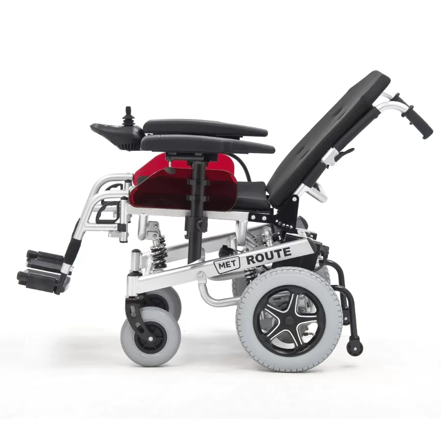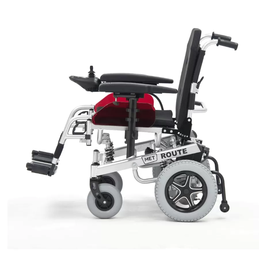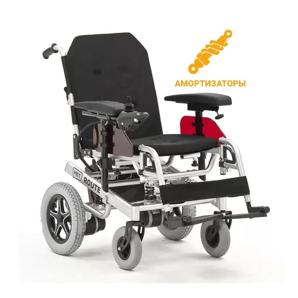- Инвалидная коляска с электроприводом MET ROUTE 14 и с 4-мя амортизаторами максимально подстраивается под индивидуальные особенности человека и обеспечивает комфортные и уверенные поездки, как в помещении, так и в городской среде, и по пересеченной местности.