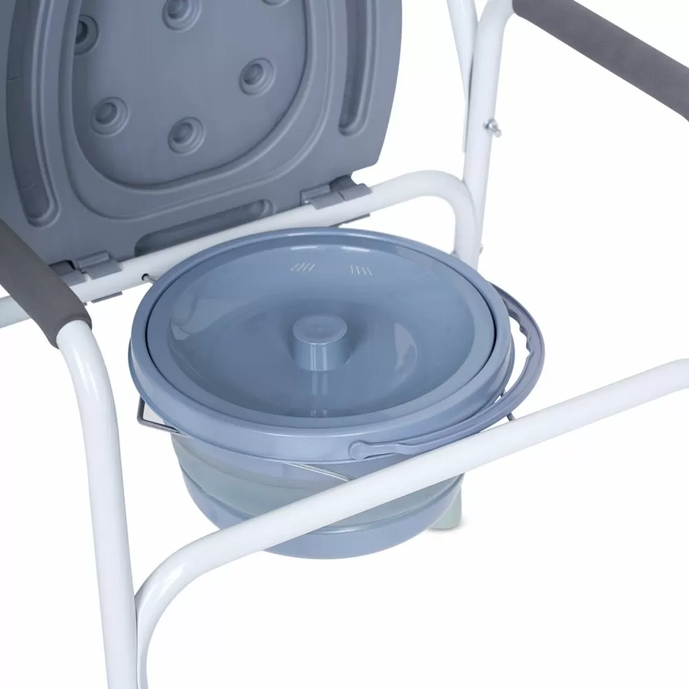 - Сиденье кресла аналогично обычному сиденью для унитаза, поэтому привычно в использовании. Сиденье дополнено крышкой, которая откидывается наверх до определенного уровня. Высота сиденья регулируется от 42,5 до 52,5 см.