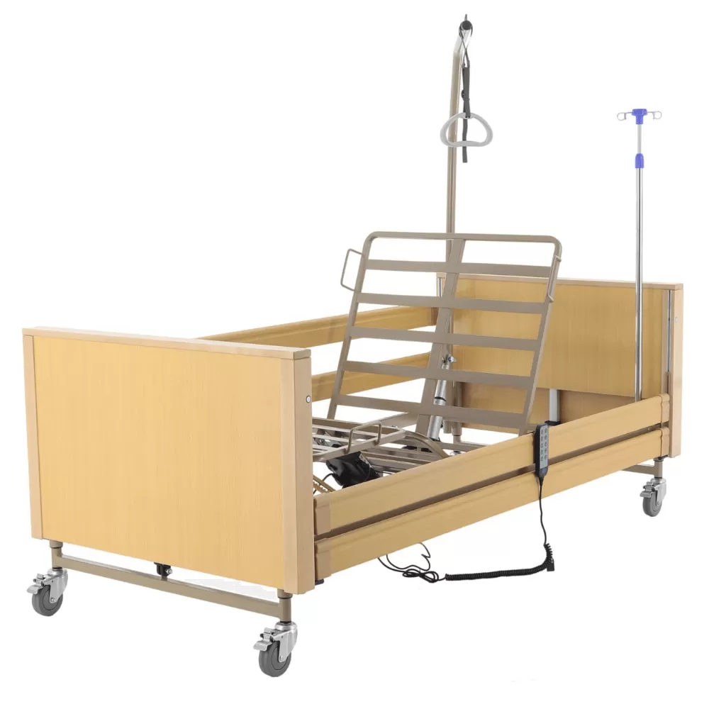 Кровать имеет электрический привод, благодаря которому можно изменять положение ее секций в зависимости от потребностей больного, а также независимый от электропитания быстрый перевод спинной секции в горизонтальное положение для сердечно-лёгочной реанимации (CPR/CЛР).Характеристики