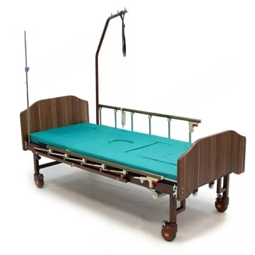 - Быстросъемные спинки головы и ног выполнены из ламинированной МДФ цвета "орех", придающими кровати "небольничный" вид и позволяют с лёгкостью осуществлять уход за пациентом