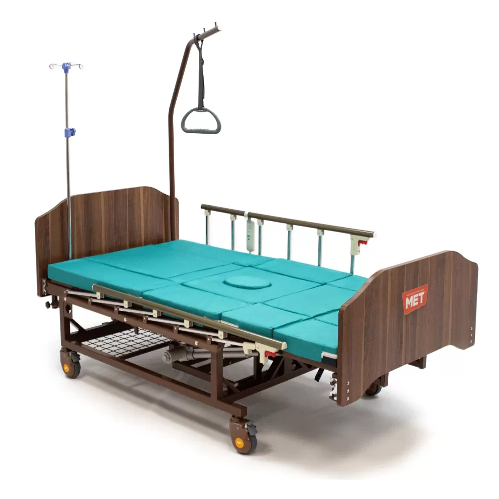Функциональная кровать МЕТ EVA выполнена в домашней, коричневой цветовой гамме и снабжена спинками с контрастной деревянной текстурой ЛДСП, сочетающимися практически с любой домашней мебелью коричневой цветовой гаммы. Помимо того, что кровать не будет контрастировать с Вашей домашней обстановкой, оказываясь эдаким островком больничной казённости, MET EVA не будет оказывать на Вашего родственника негативное психологическое воздействие, помещая больного в ЛПУ посередь родного дома.Конструктивные особенности: