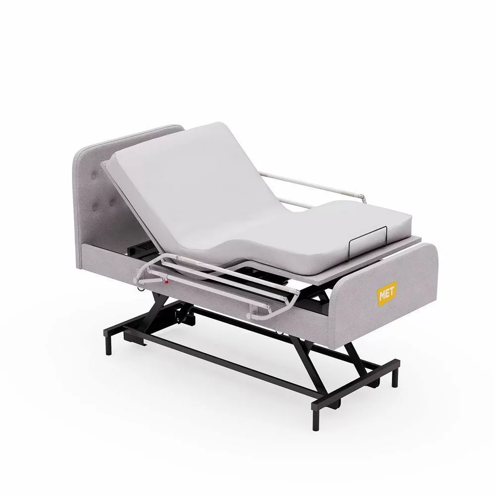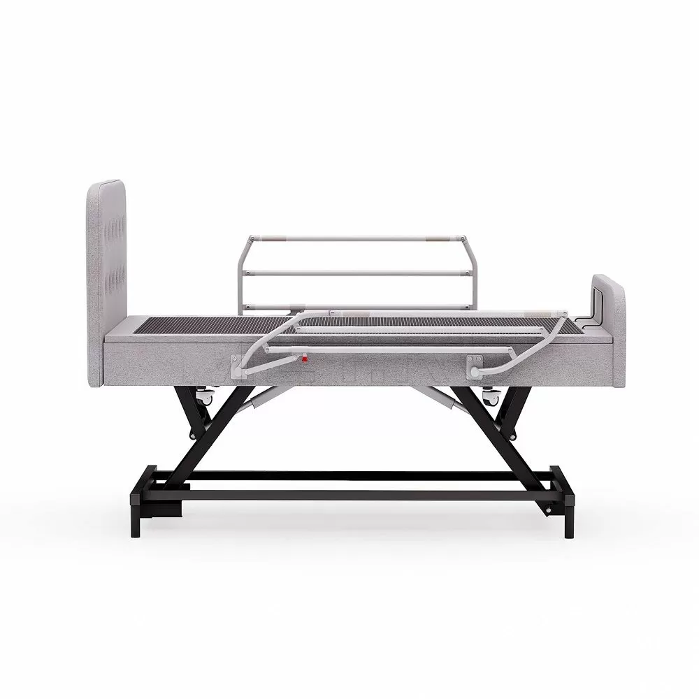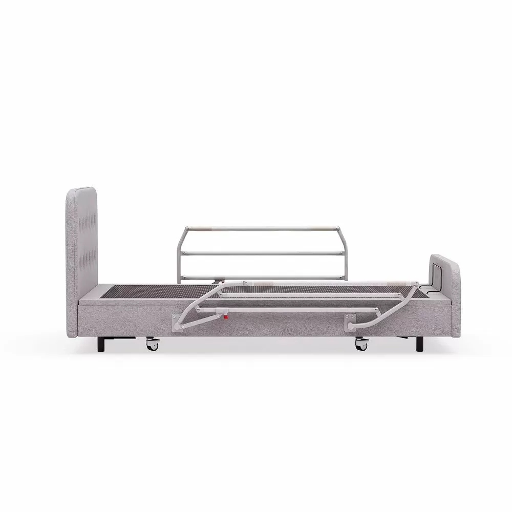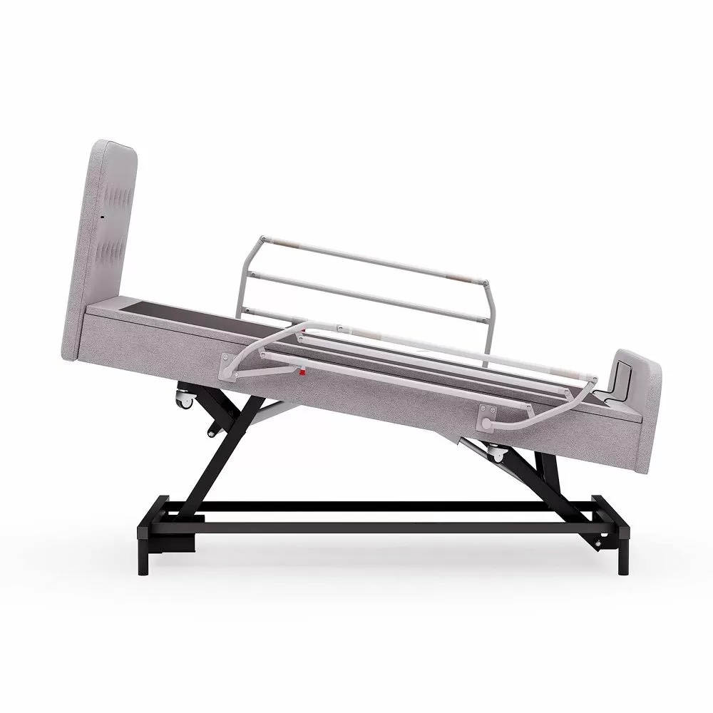 - Регулировка высоты ложа. Регулировка высоты делает кровать безопаснее и удобнее в использовании. Опущенное положение снижает риск падений, а поднятое — облегчает уход за пациентом. Дополнительно функция помогает адаптировать кровать под индивидуальные нужды: комфортный подъем для пожилых людей, удобная высота для пересаживания в кресло или смены белья.