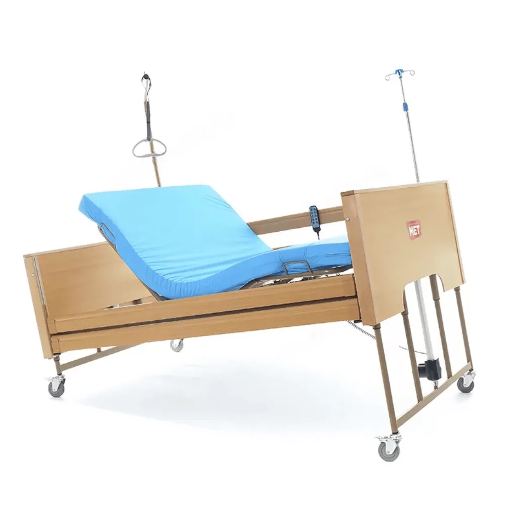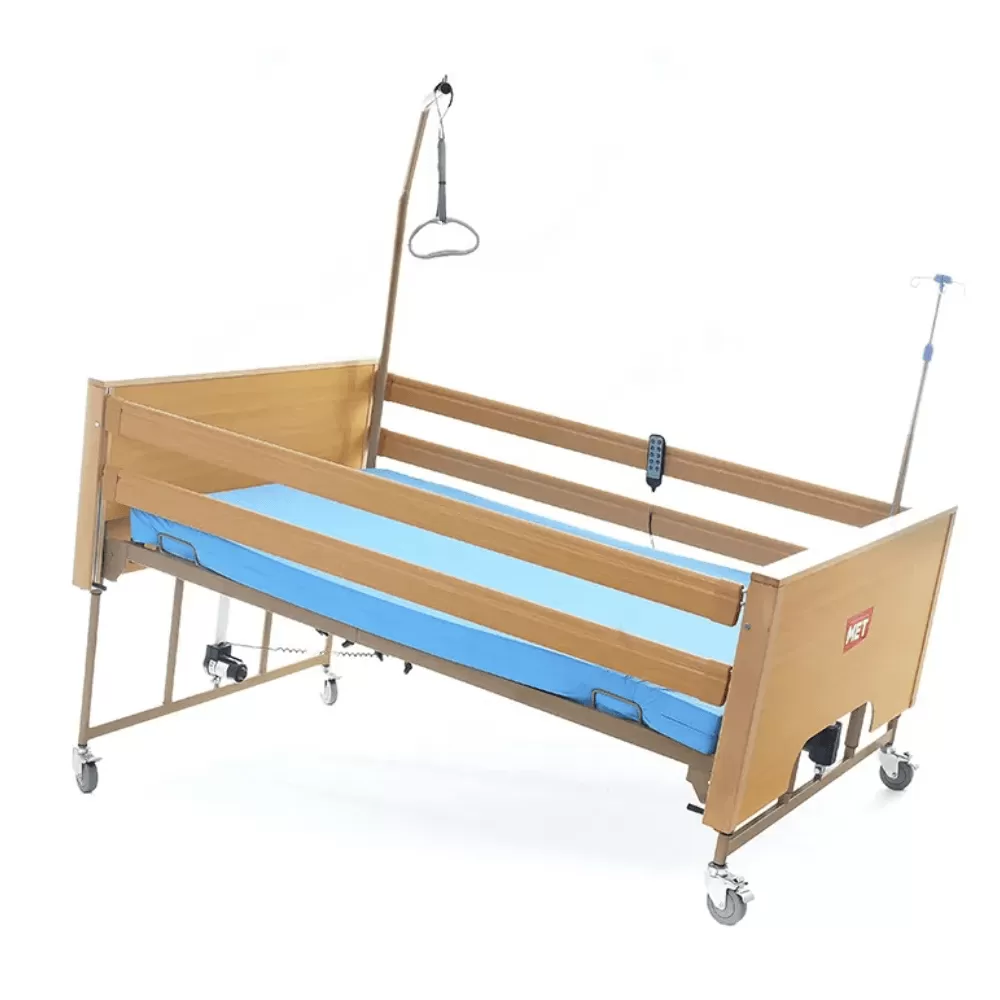 Ложе увеличенной до 140 см ширины, с регулируемой высотой от 38,5 до 78 см, выполненное на основании из металлических ламелей в эмали коричневого цвета, обладает лучшими показателями по вентилируемости, лёгкости дез.обработки и достаточно велико, чтобы обеспечить комфортное выздоровление самым крупным пациентам.