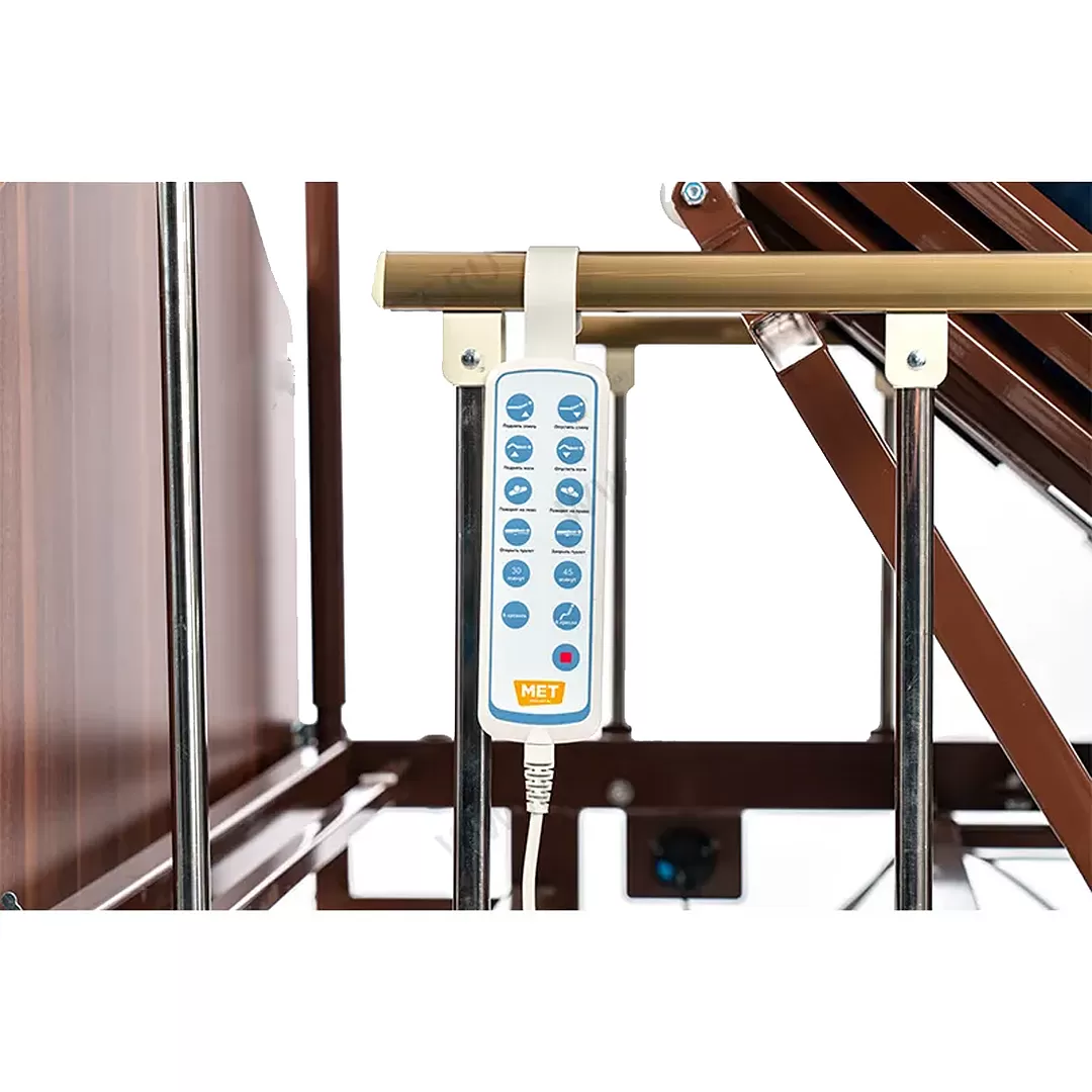 - Электрические регулировки с пульта: можно поднимать голову и спину, опускать и поднимать ноги, управлять туалетным устройством и переворачивать пациента. Если пациент может управлять пультом самостоятельно, то он сможет менять свое положение без посторонней помощи.