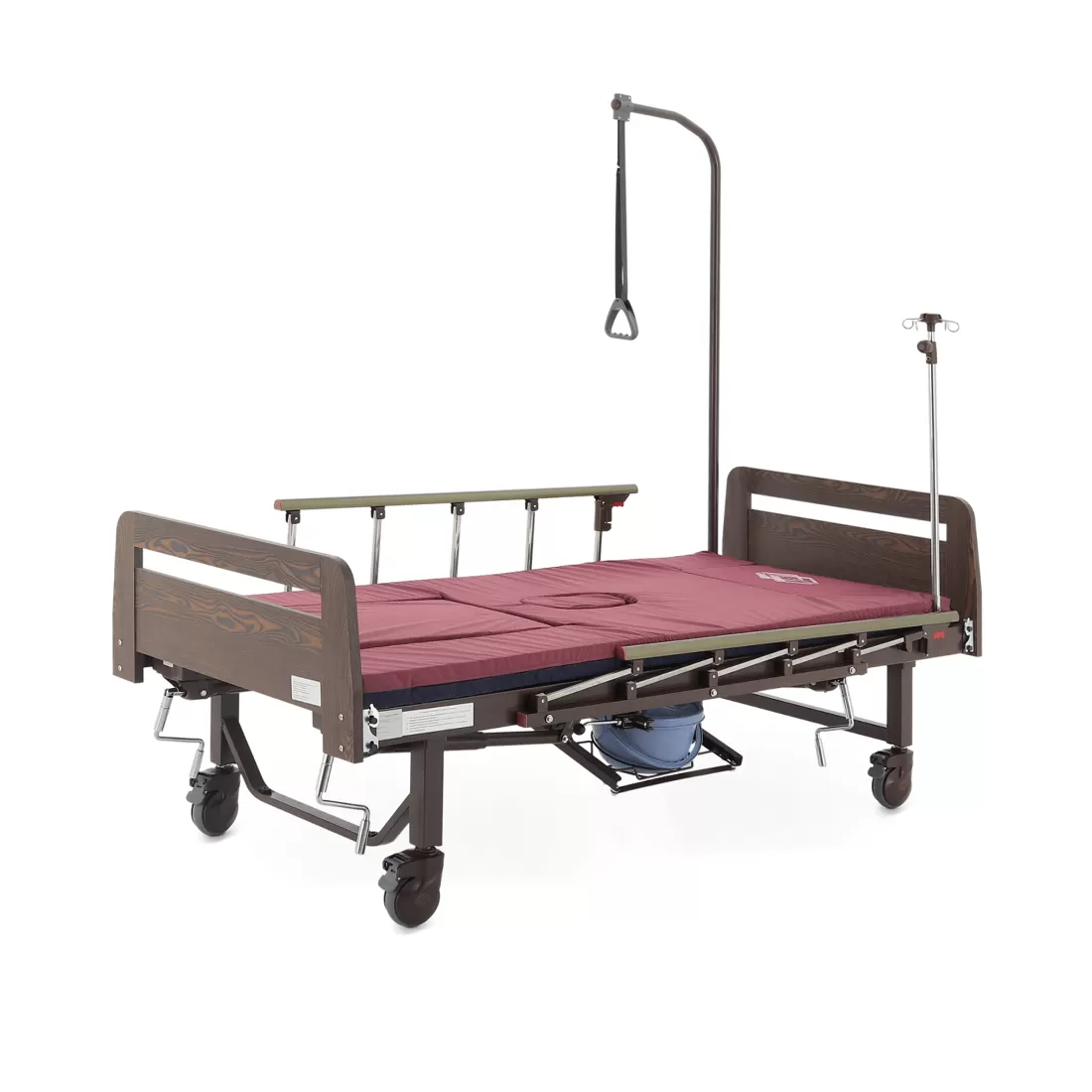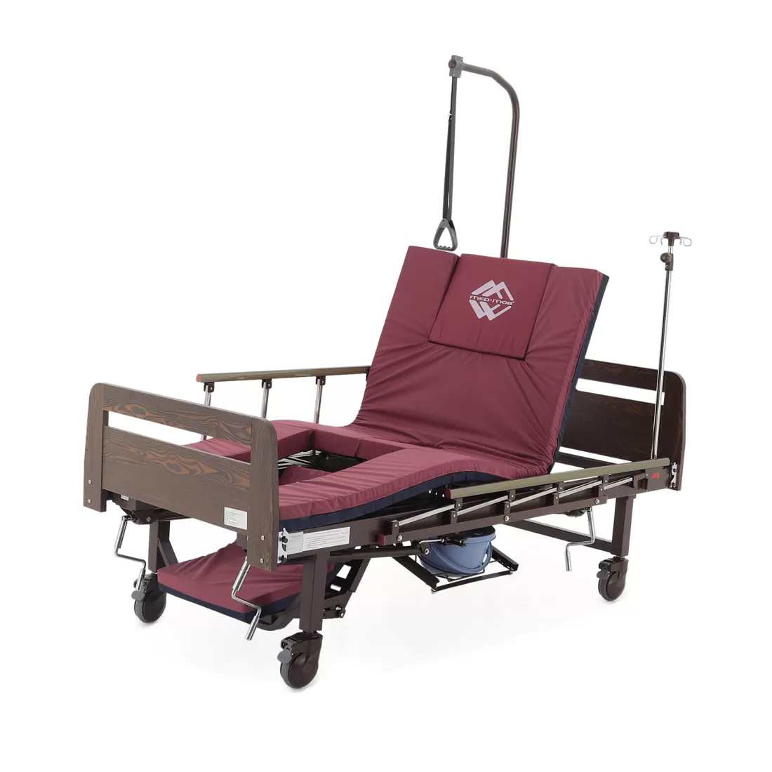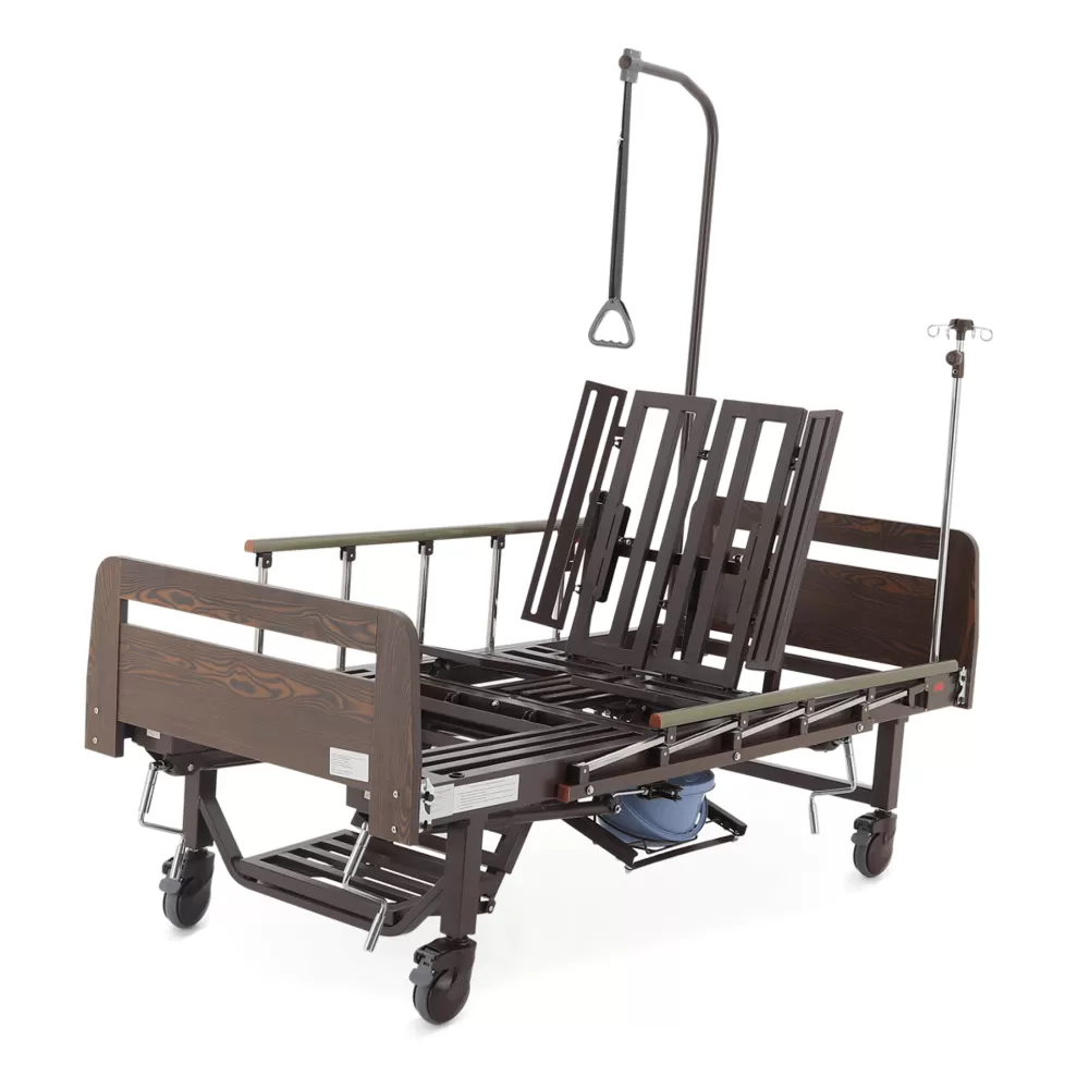 Кровать-кардиокресло YG-5 — вариант, который подойдет для больных с сердечно-сосудистыми заболеваниями.Винтовые механизмы обеспечивают изменение угла наклона ножной секции не только ниже, но и выше уровня основной части ложемента. Благодаря этому пациент занимает оптимальное для себя положение, позволяющее избежать отечности в ногах, застойных процессов в сосудах и других малоприятных последствий болезней сердечно-сосудистой системы.