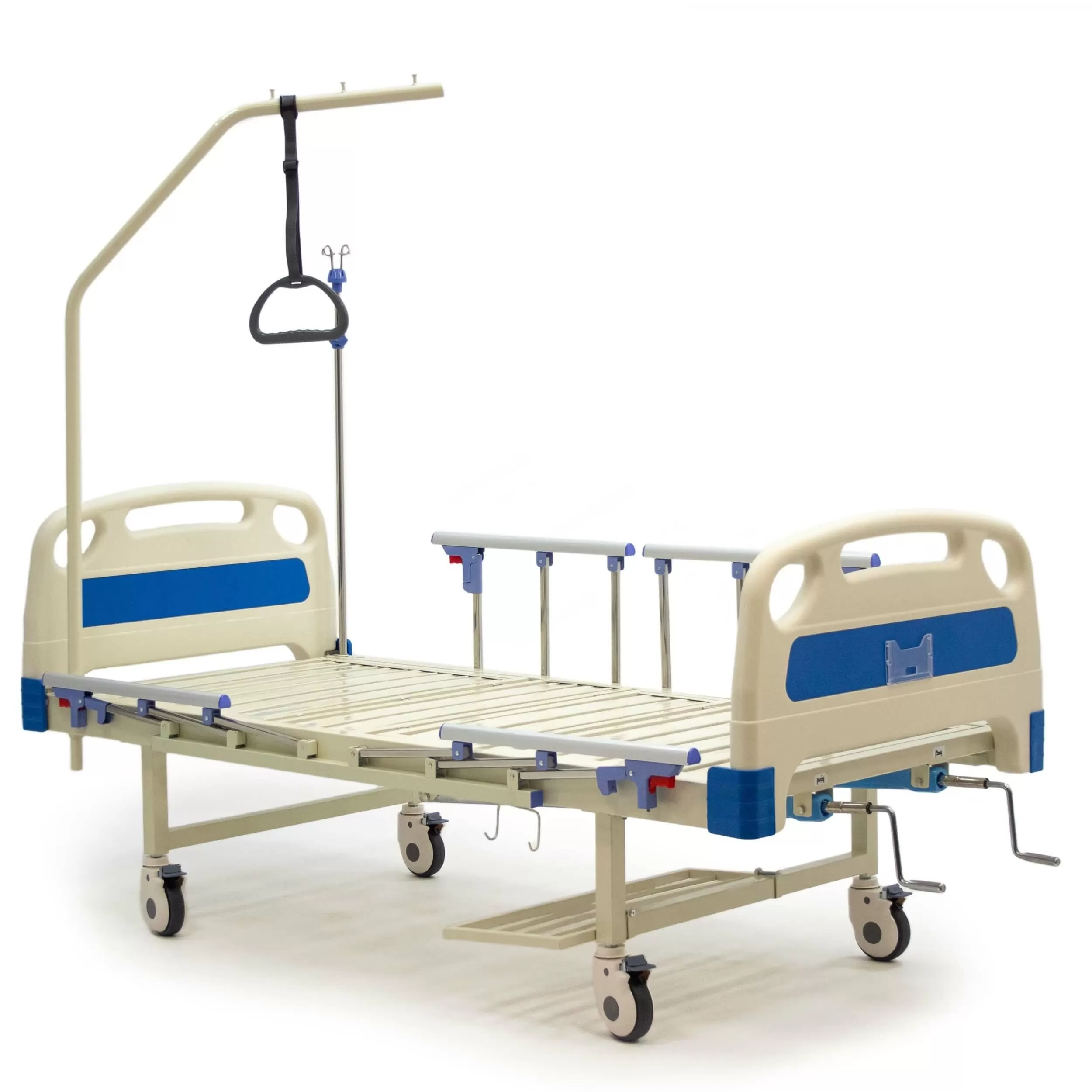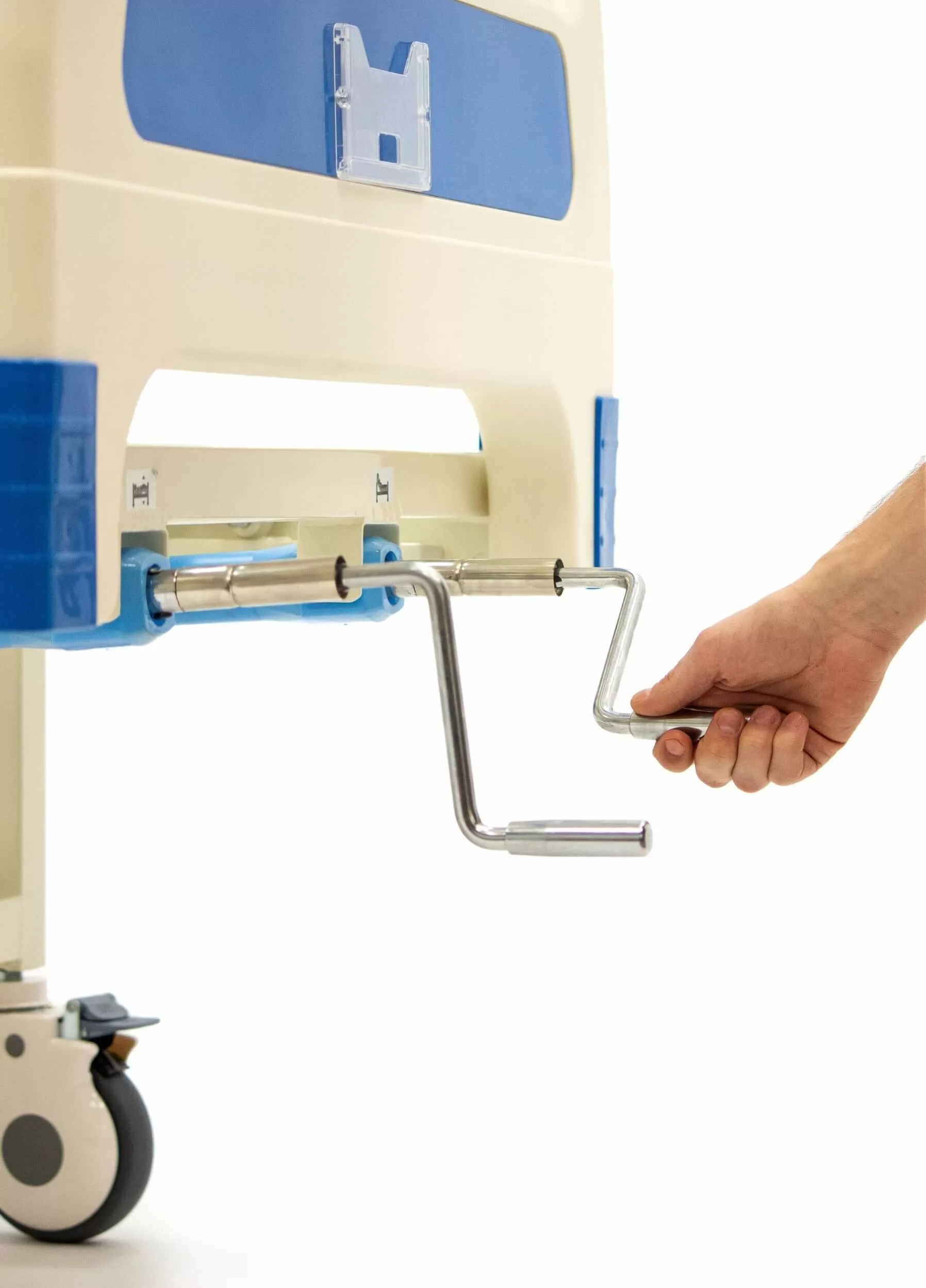 Выдвижные регуляторы положения ложа расположены в ножной части кровати, что позволяет персоналу легко регулировать положение ложа.
