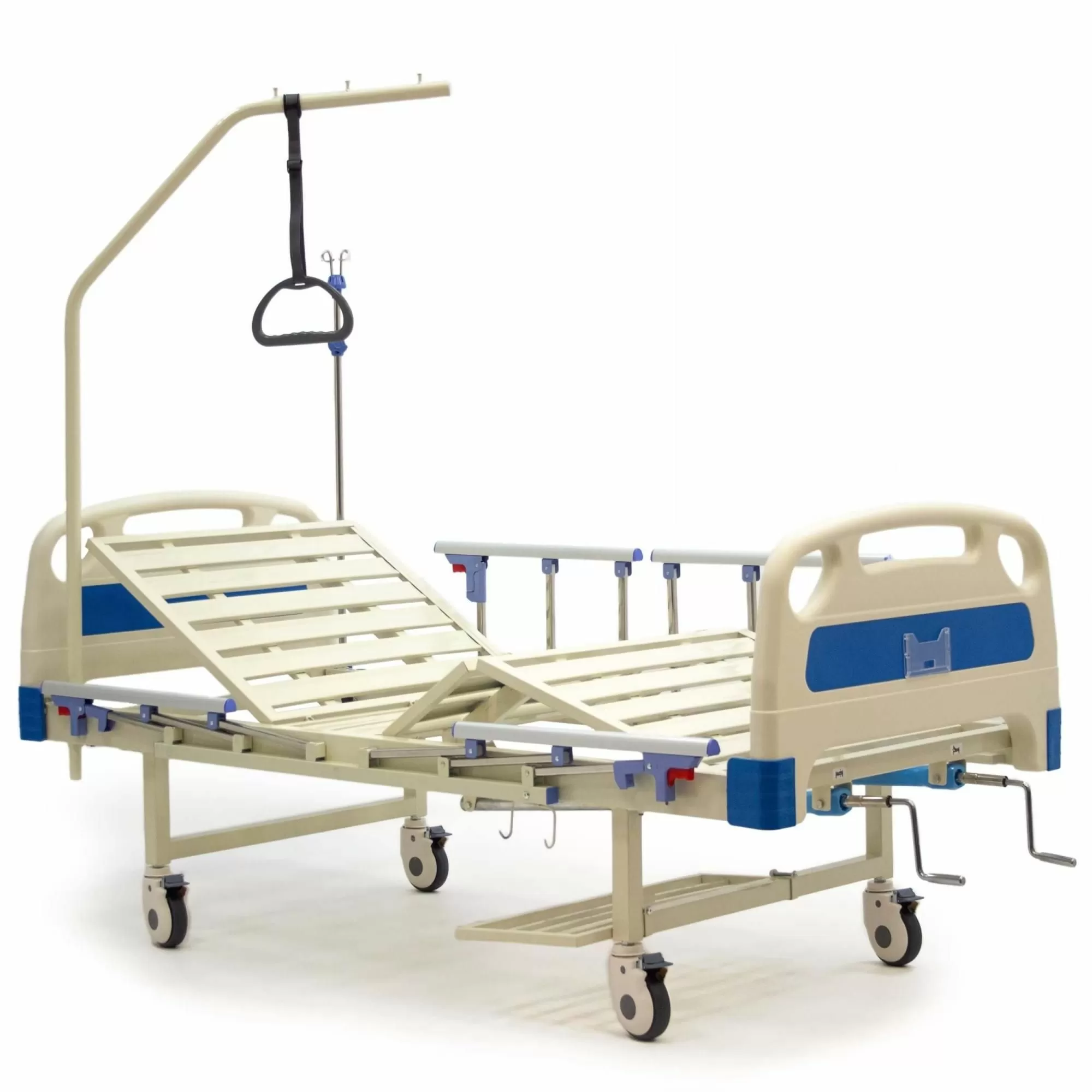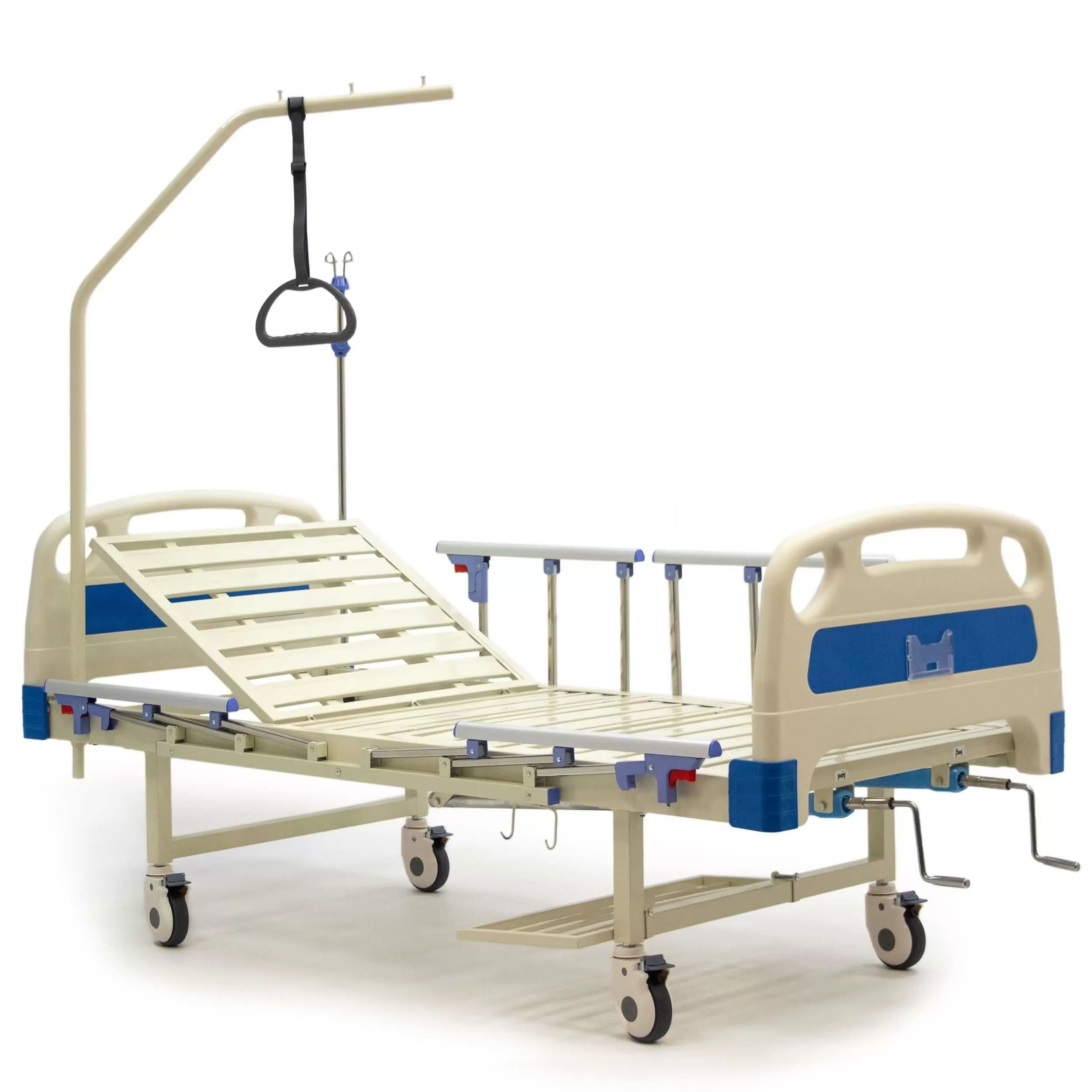Цветные вставки из ABS-пластика в спинах кровати, вместо наклеек из пленки.Кровать 4-х секционная, снабжена винтовыми механическими приводами регулировки угла наклона спинной секции и угла наклона ножной секции.