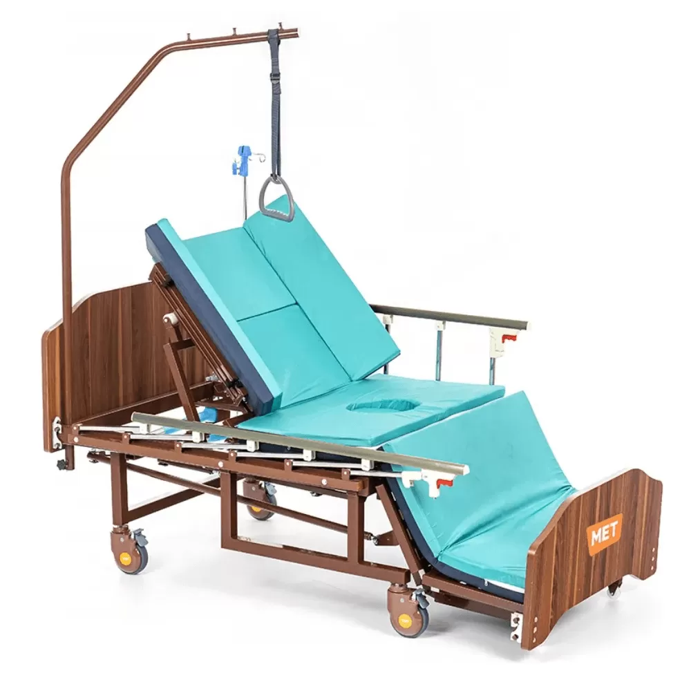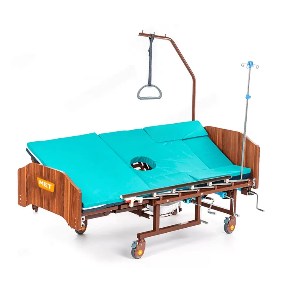 - Функция переворачивания осуществляемая также с помощью вращения приводных рукояток. При использовании данной функции обратите внимание на то, что функцию переворачивания больного ЗАПРЕЩЕНО использовать при поднятом изголовье кровати, во избежание механических поломок.